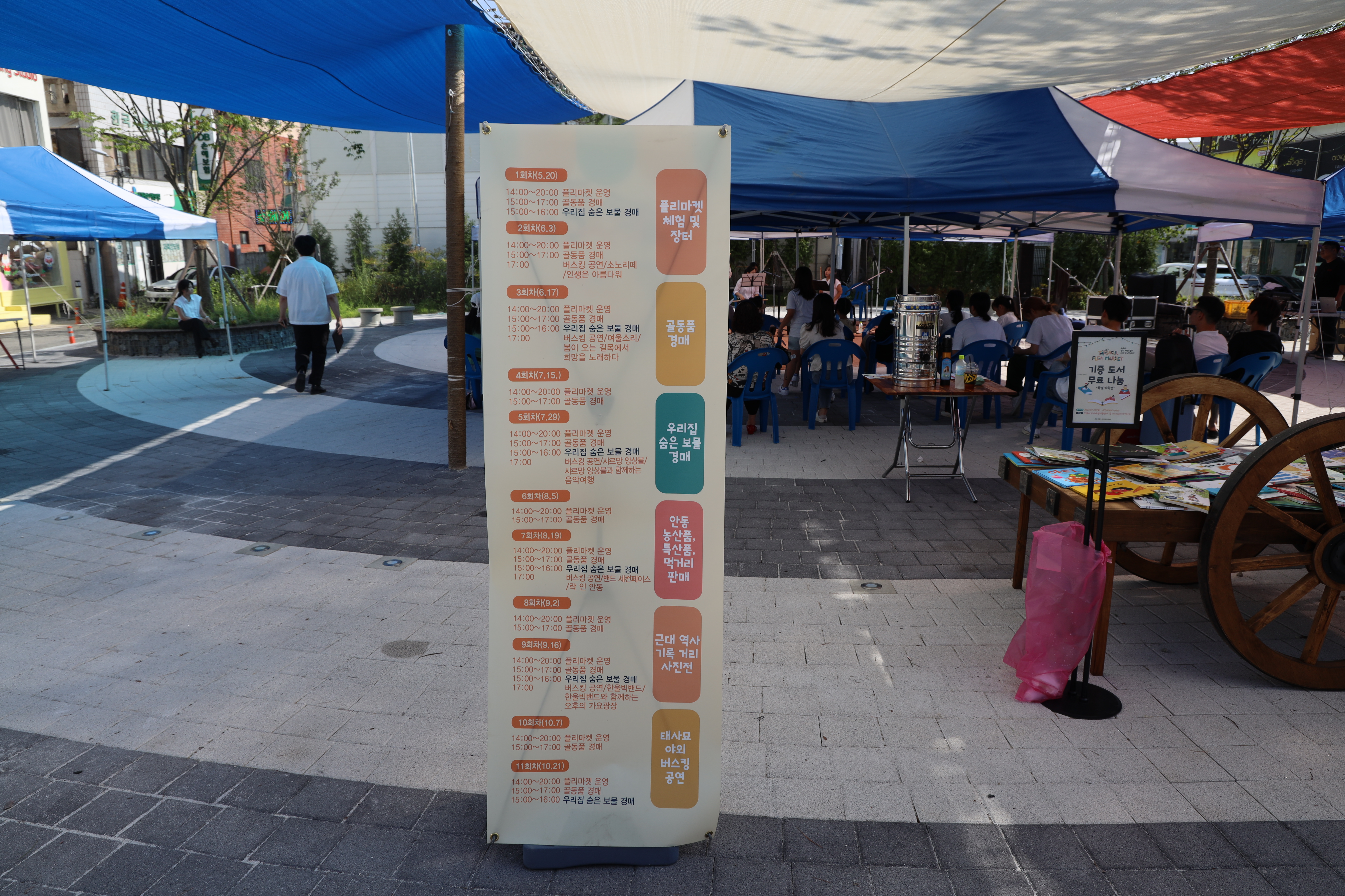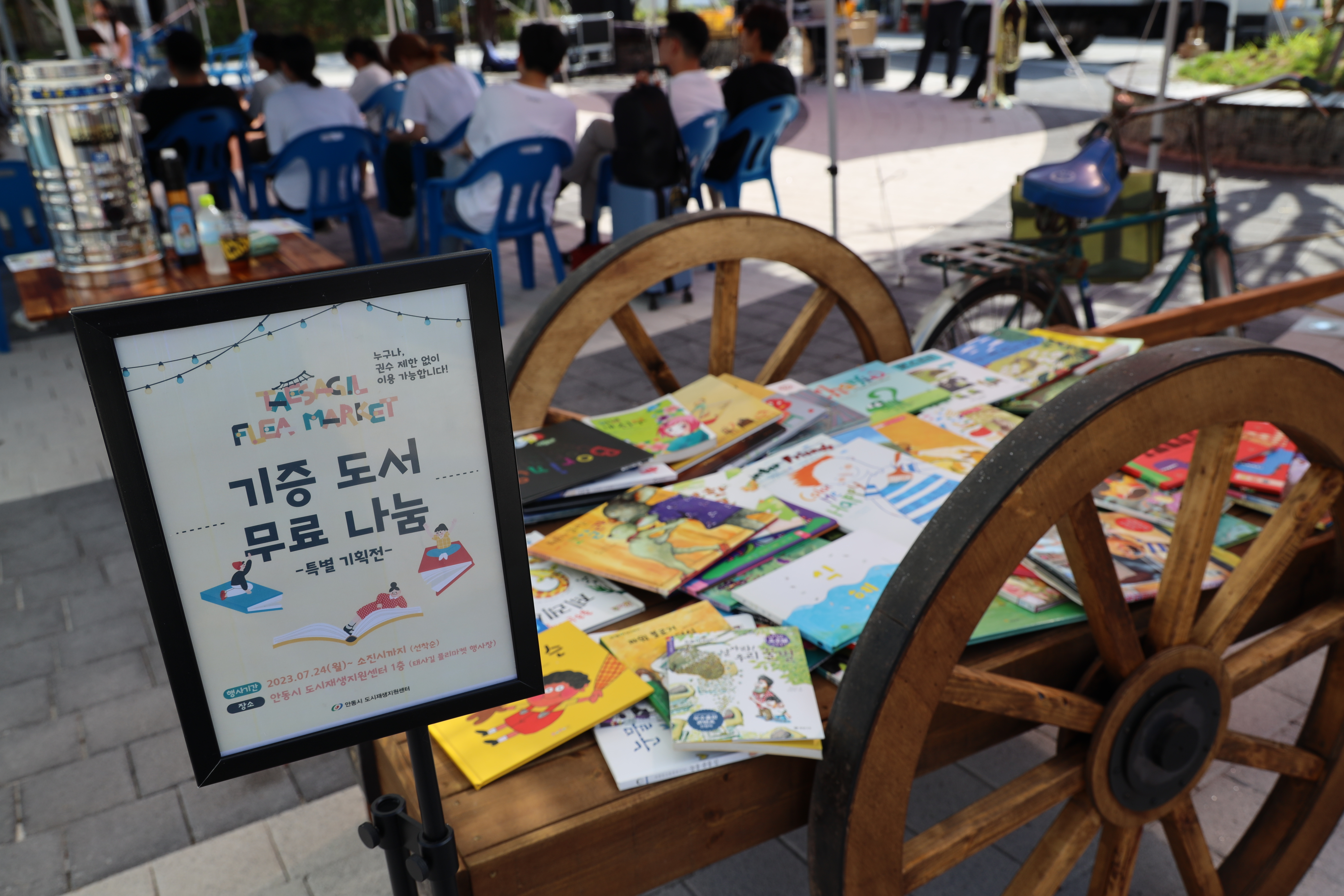 태사광장이라는 곳은 최근에 새롭게 조성된 곳인데요. 여기에서는 각종 공연과 더불어 시원한 그늘 공간이 제공되며 기증도서 무료나눔 기획전도 펼쳐지고 있었습니다.