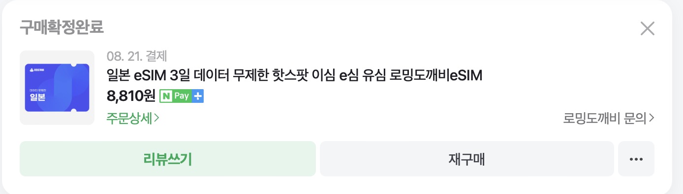 일본 여행 하실분들은 eSIM 지원되는 폰이라면 한 번 eSIM으로 도전해보시는 것도 좋을 것 같아요. 같이 간 친구는 아이폰이었는데 데이터 eSIM으로 로밍했었는데 그 친구도 데이터 잘 사용했었고 저도 잘 썼습니다 ㅎㅎ