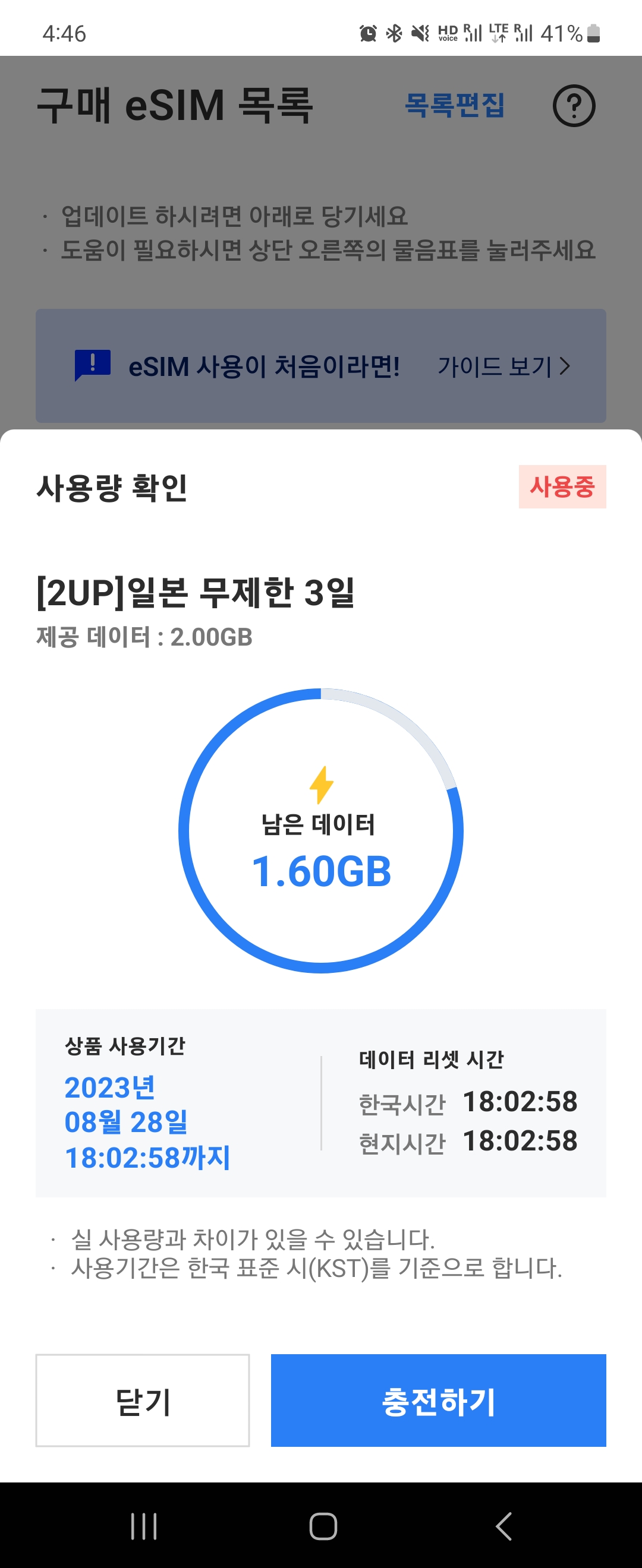 그 다음으로 궁금했던게 한국에서 이심을 미리 등록해두고 가도 일수 차감이 되는지 안되는지였는데요.