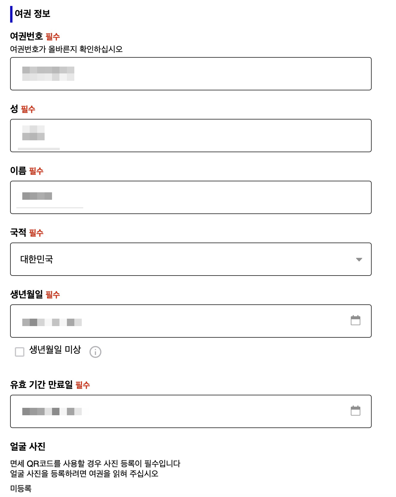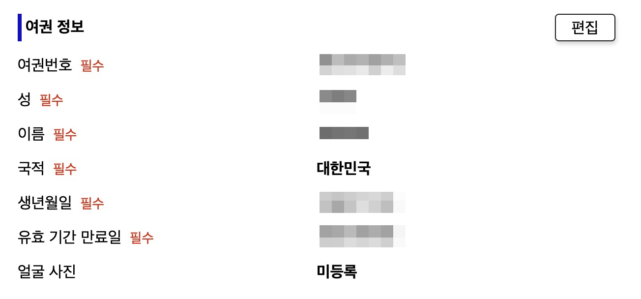 여권 정보는 위 그림처럼 입력해주세요.