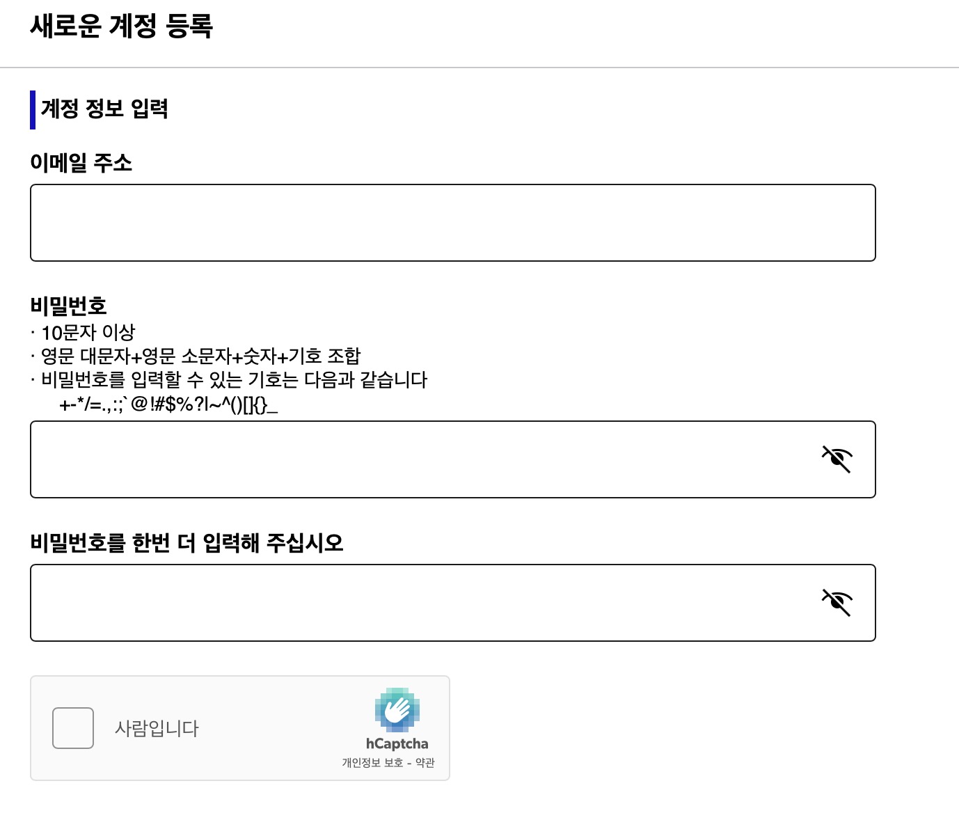 새로운 계정의 경우 이메일 주소로 등록되기 때문에 이메일 주소를 정확하게 입력해주고, 비밀번호를 2번 넣어줍니다.