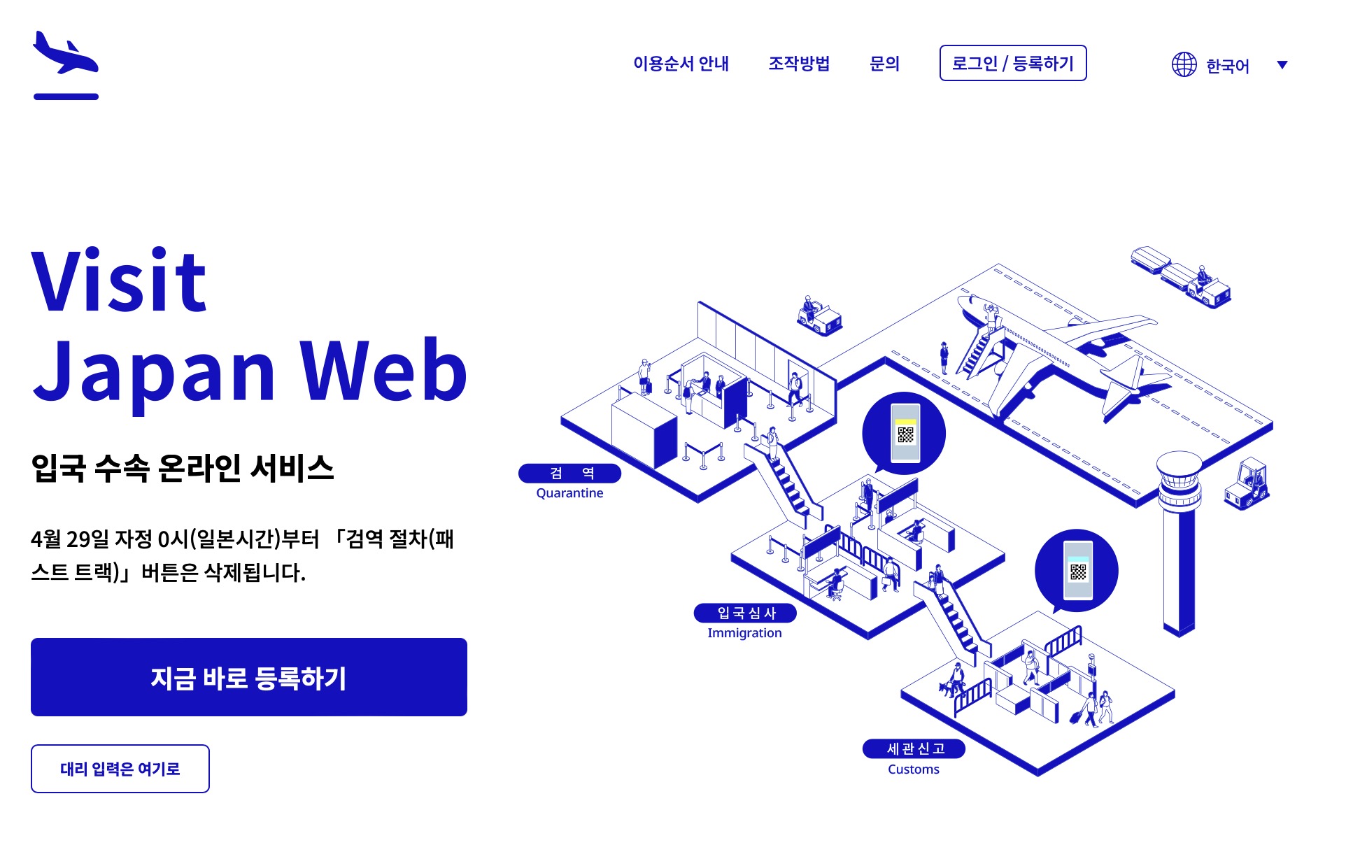 비짓 재팬 웹사이트에 방문하시면 온라인으로 입국수속 온라인 서비스를 신청할 수 있습니다.