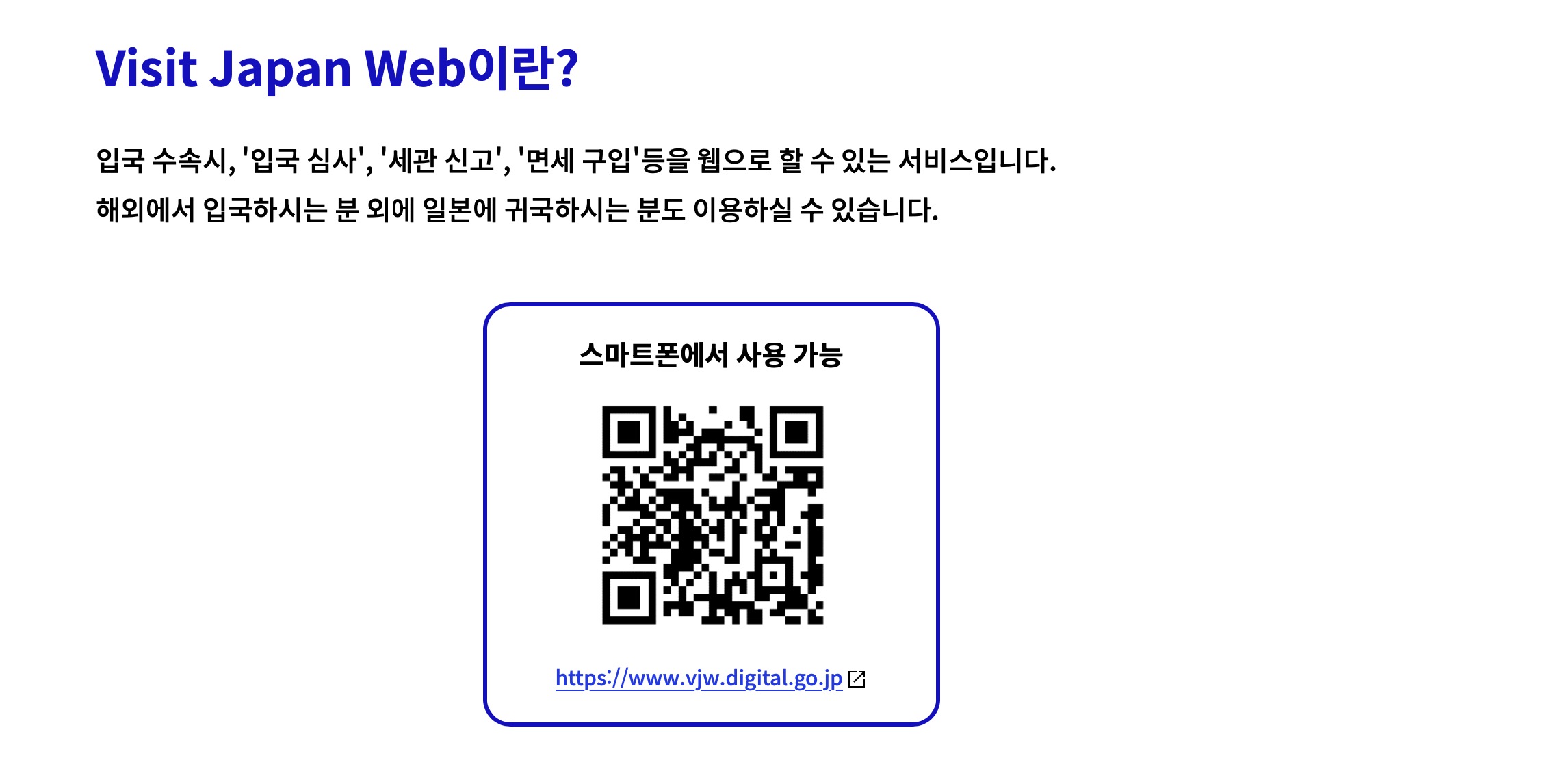 비짓 재팬 웹사이트 주소 : https://vjw-lp.digital.go.jp/ko/