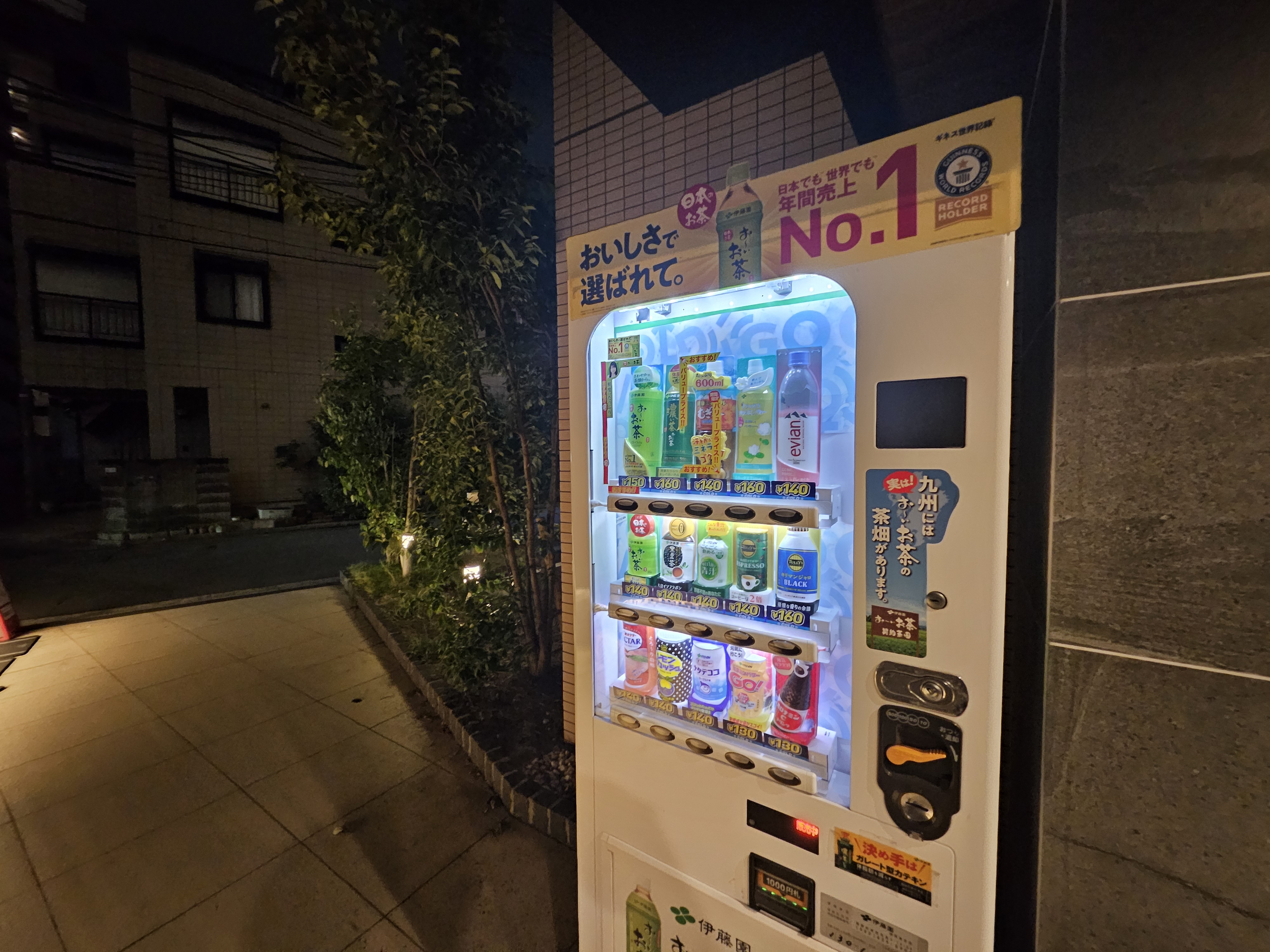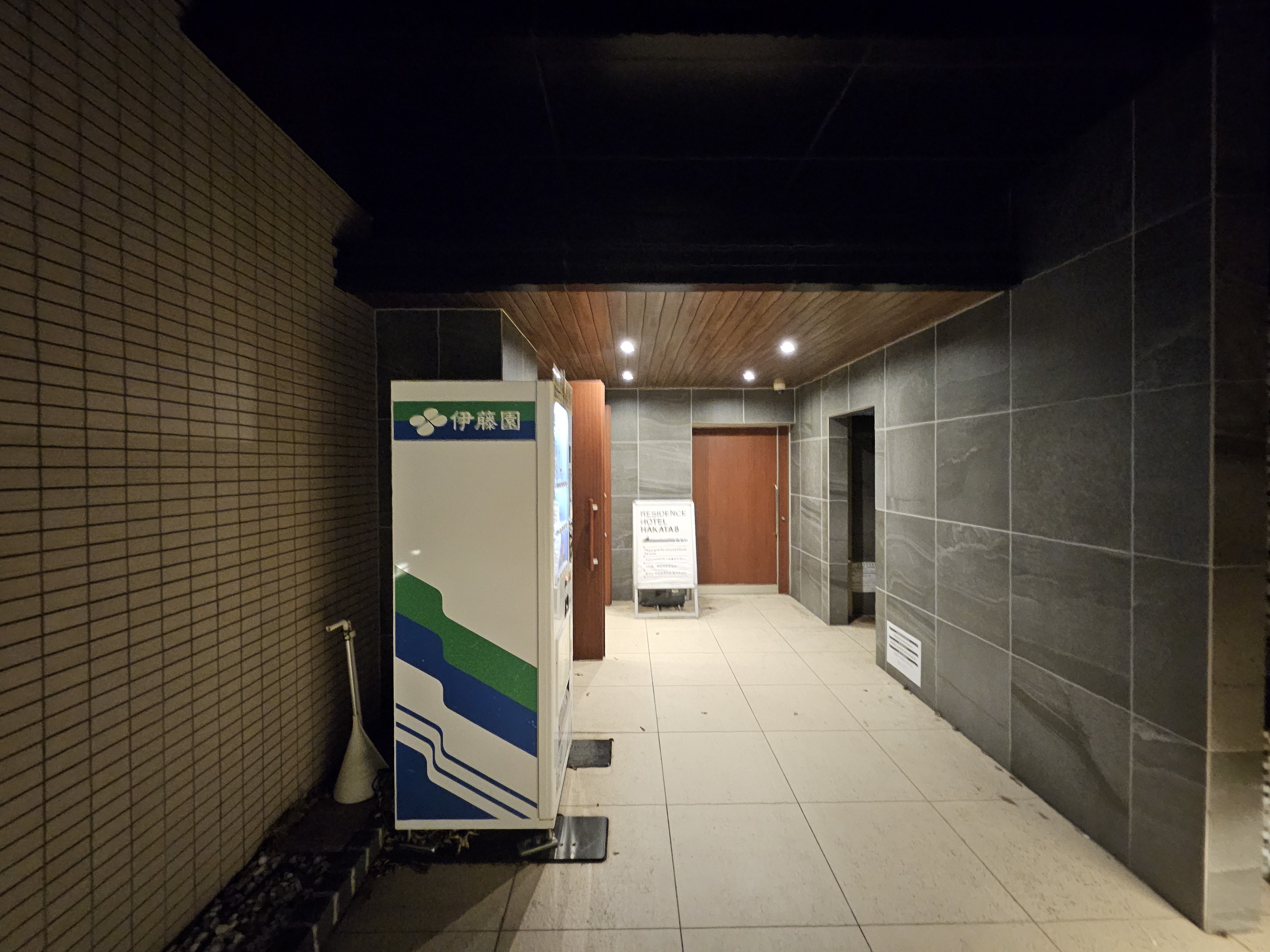 후쿠오카 레지던스 호텔 하카타 8 입구에는 이렇게 음료 자판기가 하나가 있고요. 바로 옆에 자전거를 세울 수 있는 공간도 있습니다.