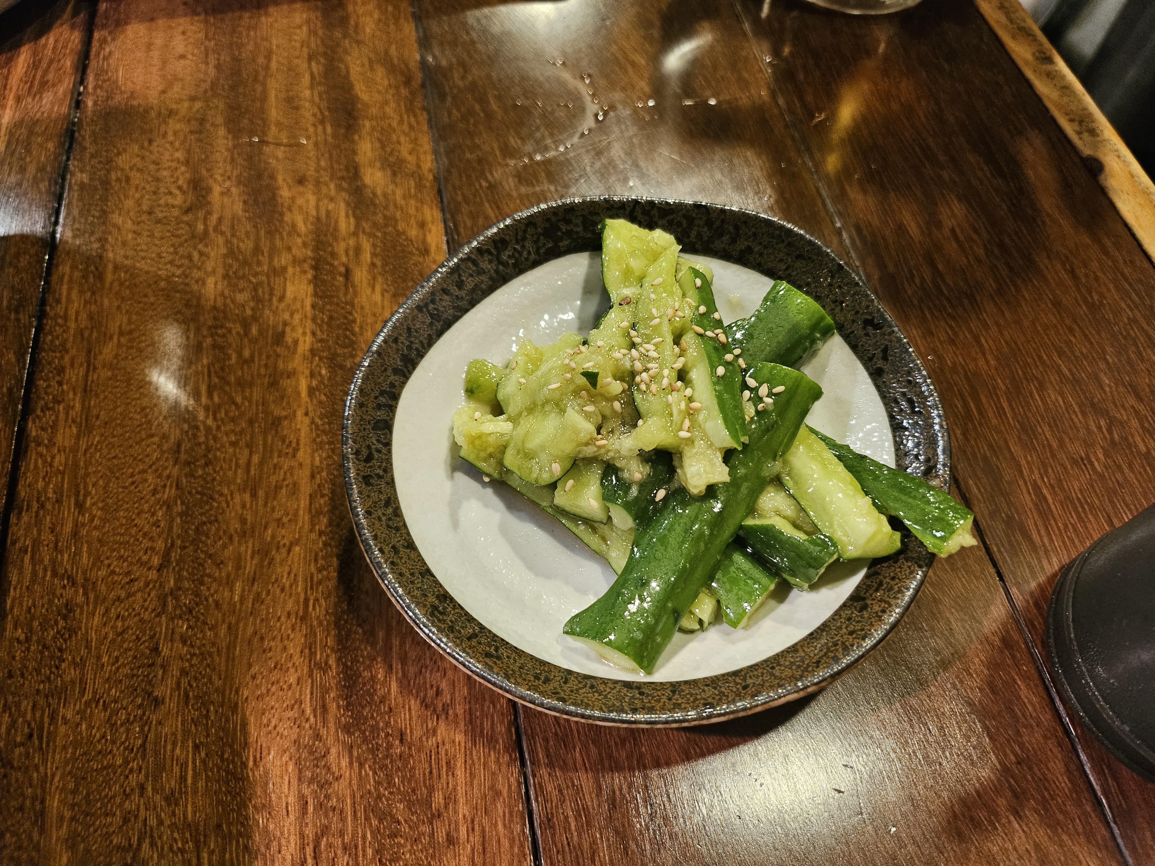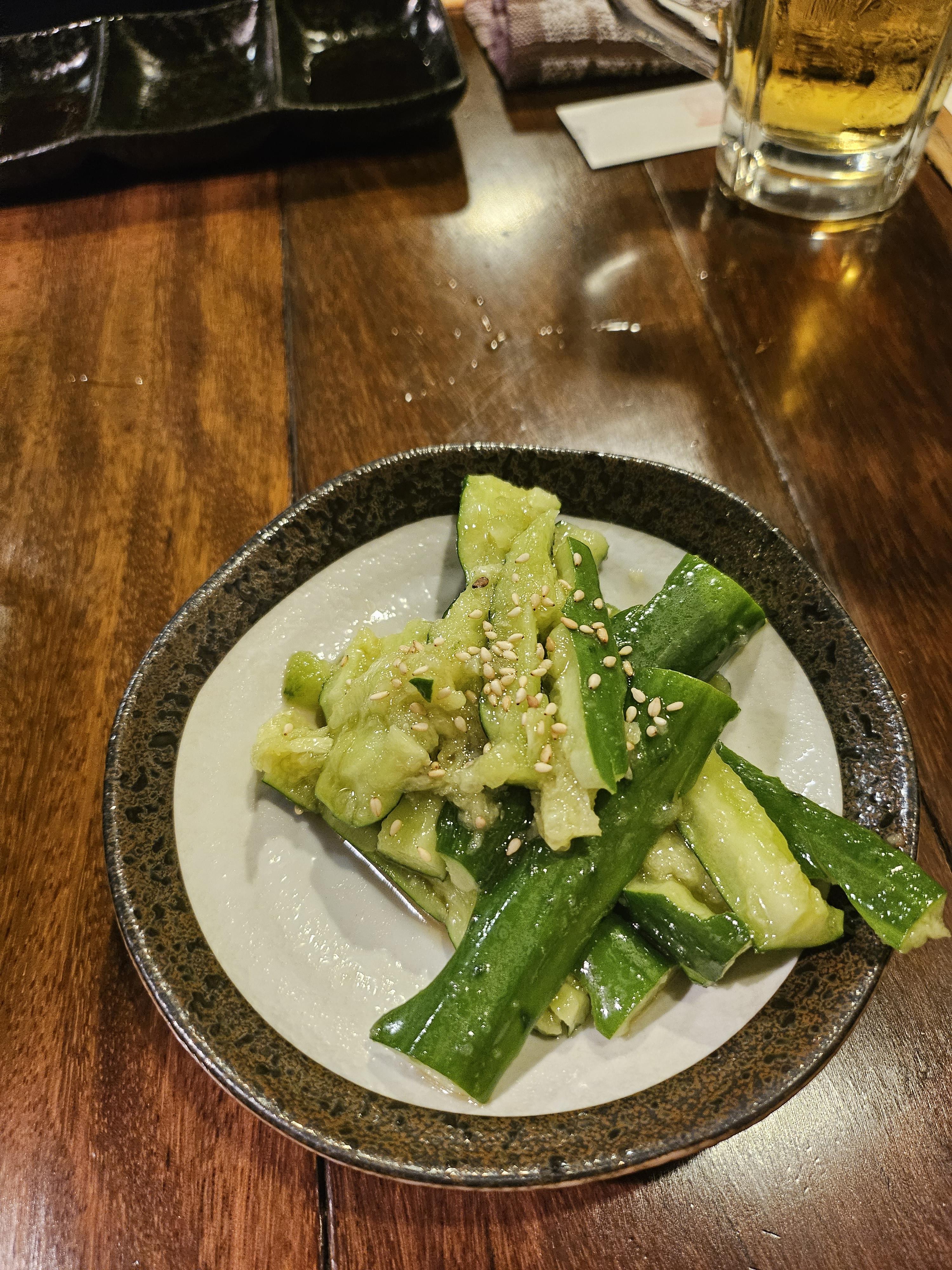 구글 맵에서 강력 추천하는 리뷰가 있었던 오이무침이었어요. 맛이 좋아요. 조금 짠 편이라서 단독으로 먹기보다는 밥이랑 같이 먹거나 술안주로 고기랑 같이 먹으면 좋습니다.