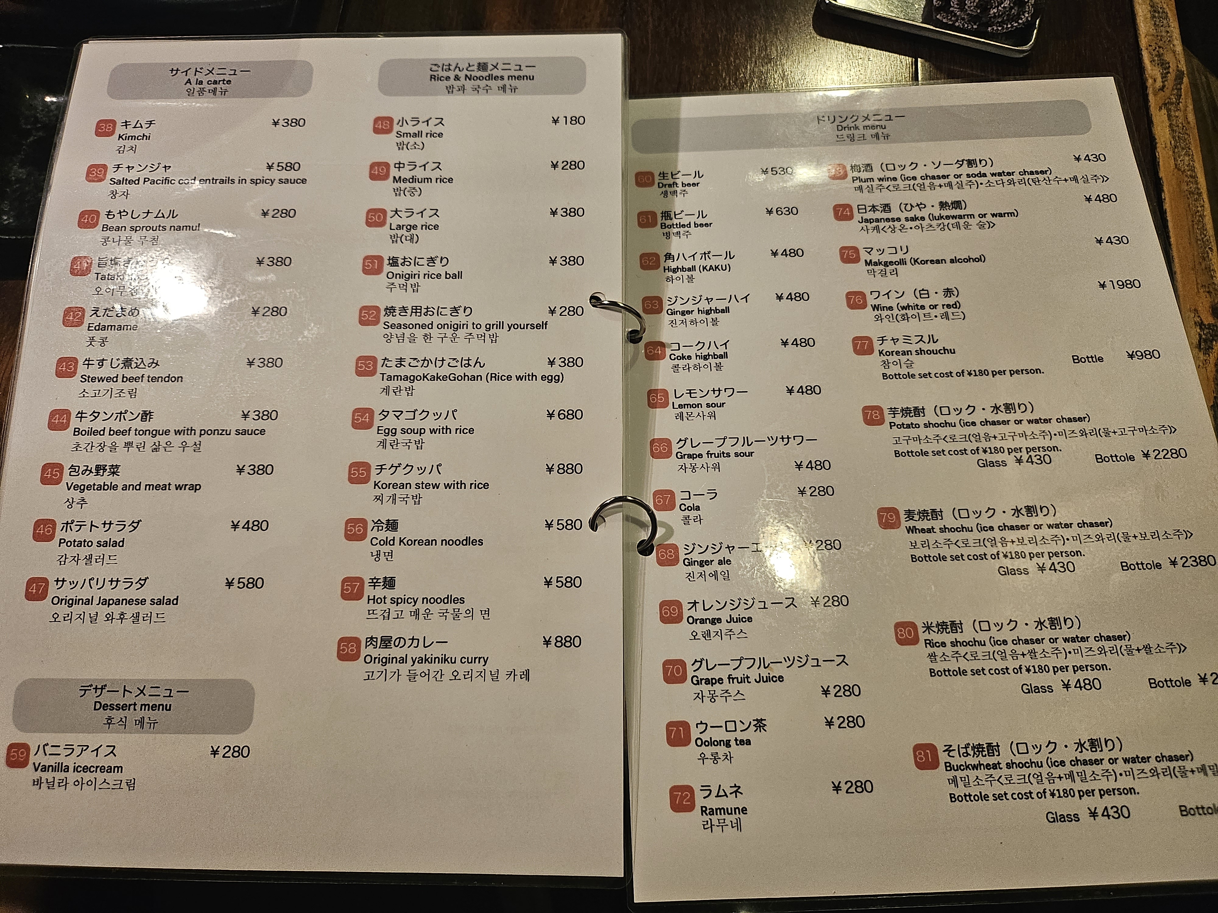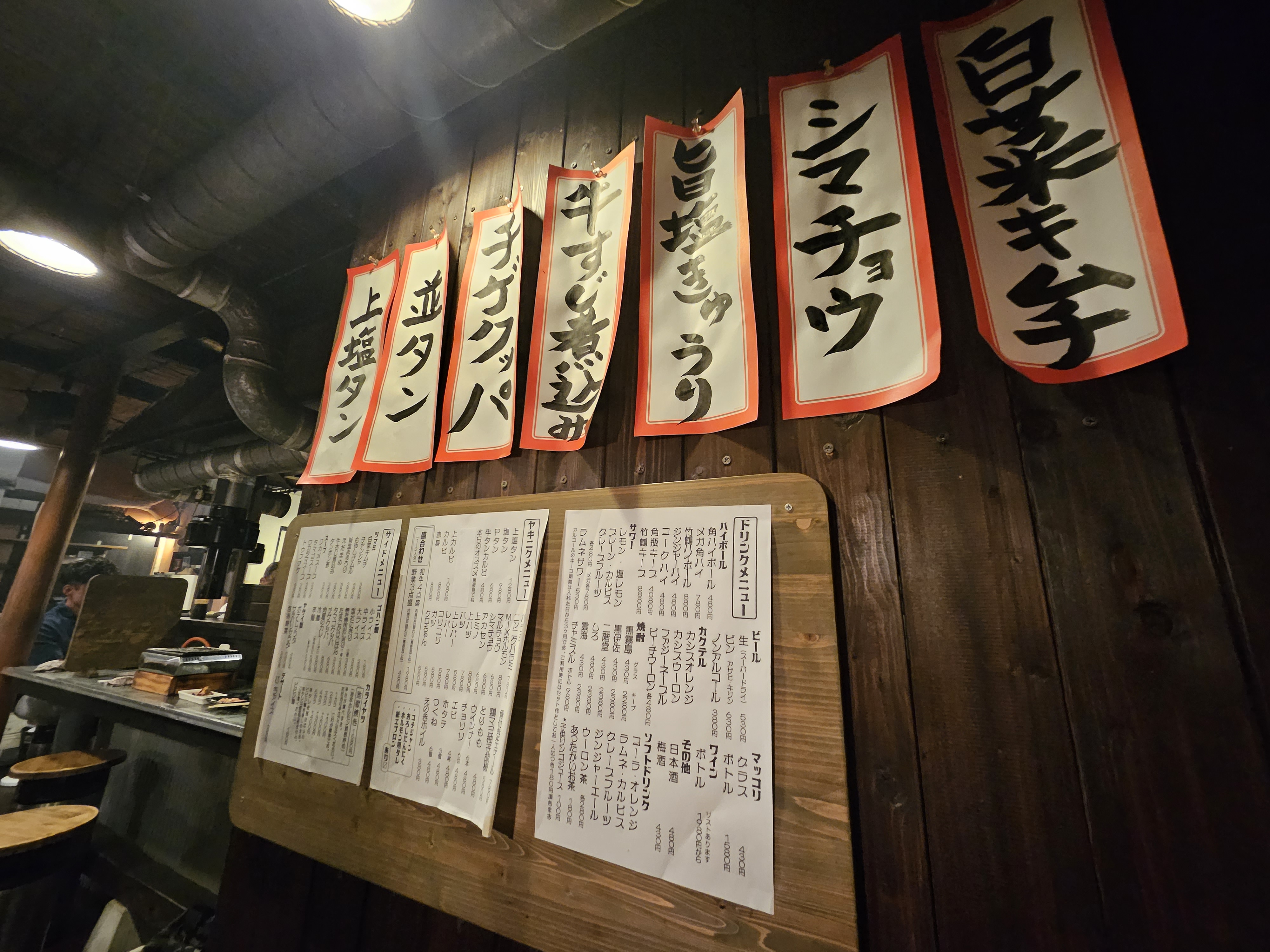 가게 옆에는 이렇게 일본어 메뉴가 표시돼 있는데 일어를 읽을줄 몰라서 저희는 한국어 메뉴판으로만 계속 주문하였습니다.