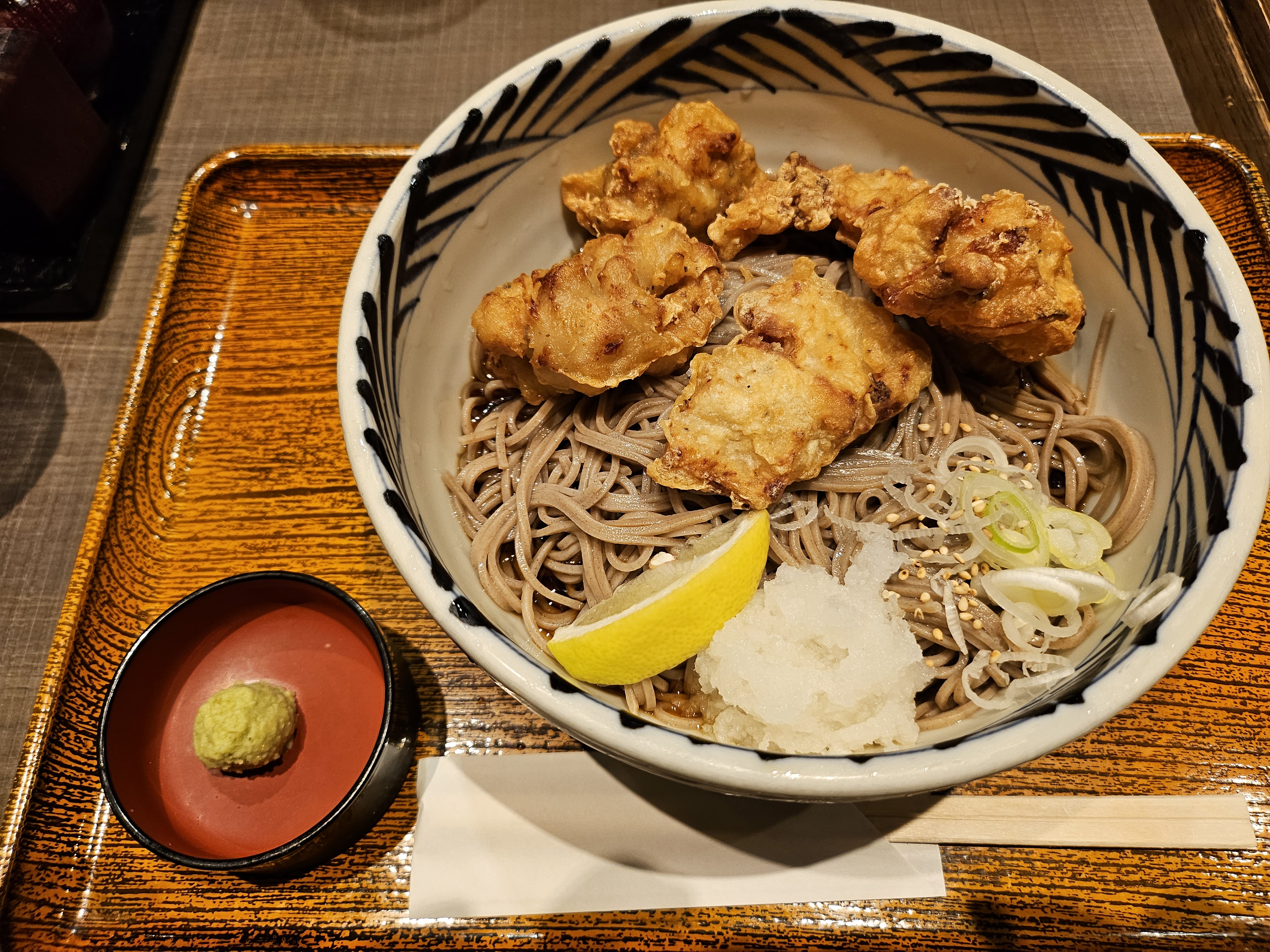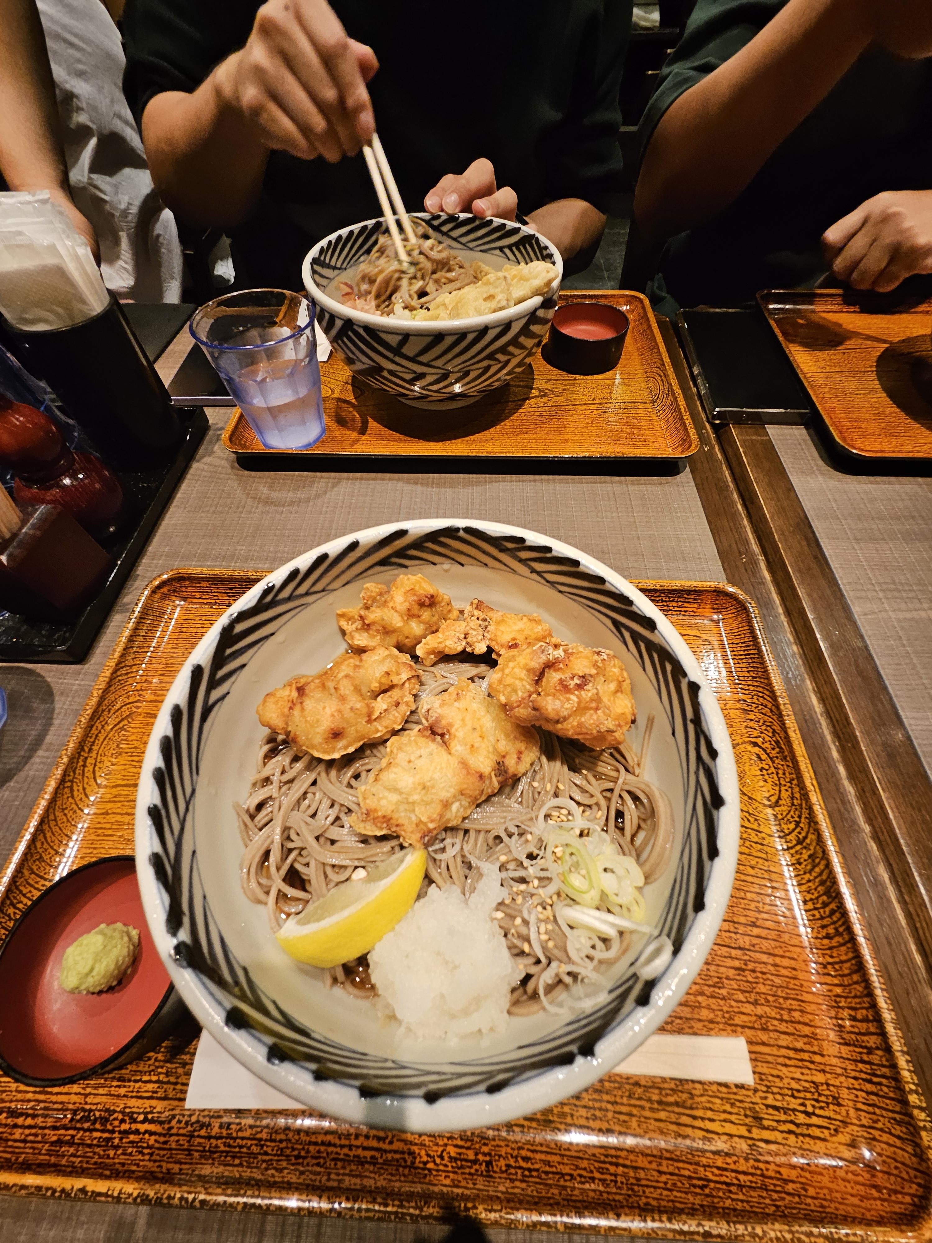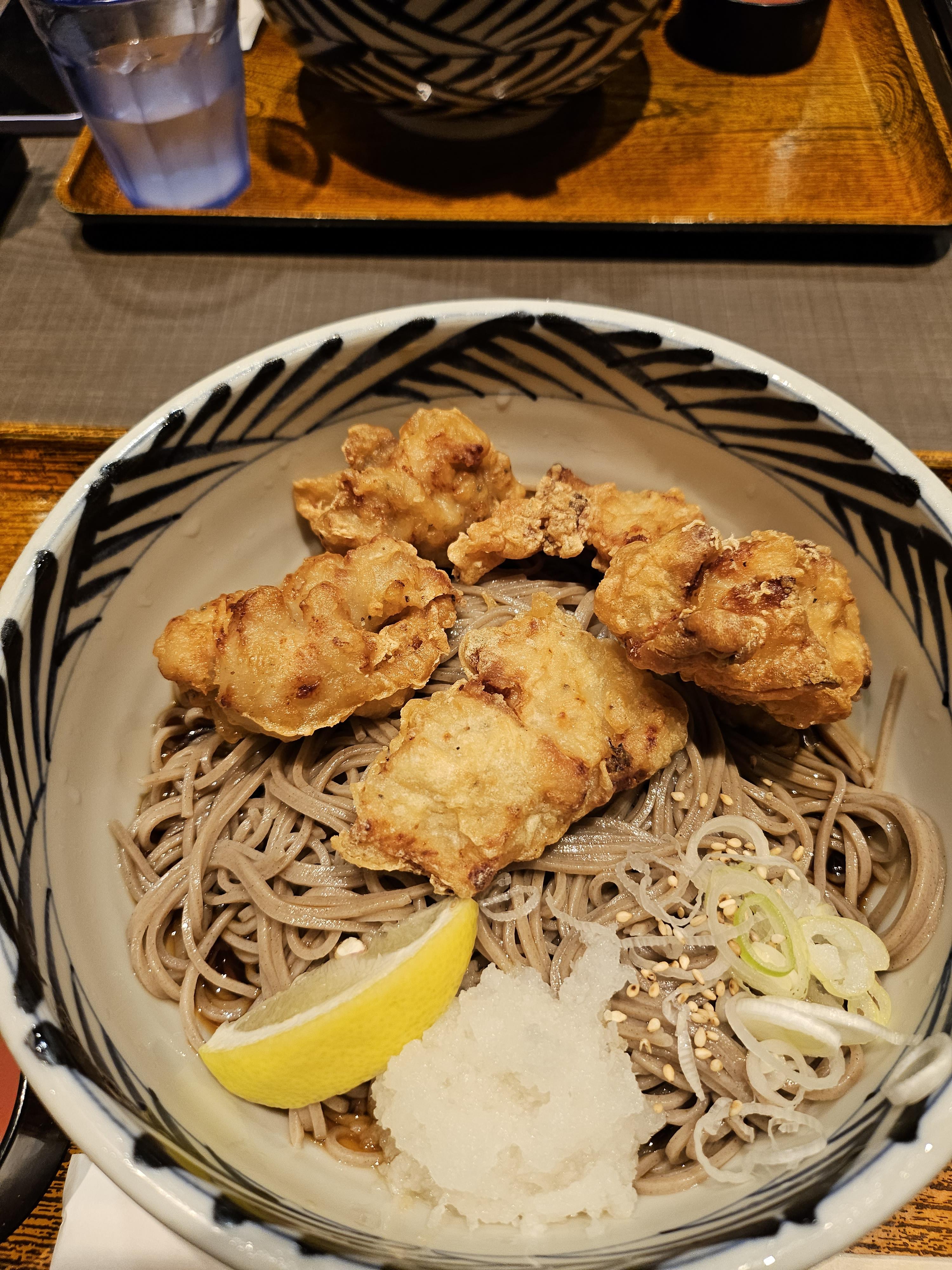 닭튀김 냉소바를 주문해서 먹어봤는데 나름 만족스러웠습니다. 소바 자체는 조금 밍밍한 맛이에요. 닭튀김은 상당히 맛있는 편이었어요.