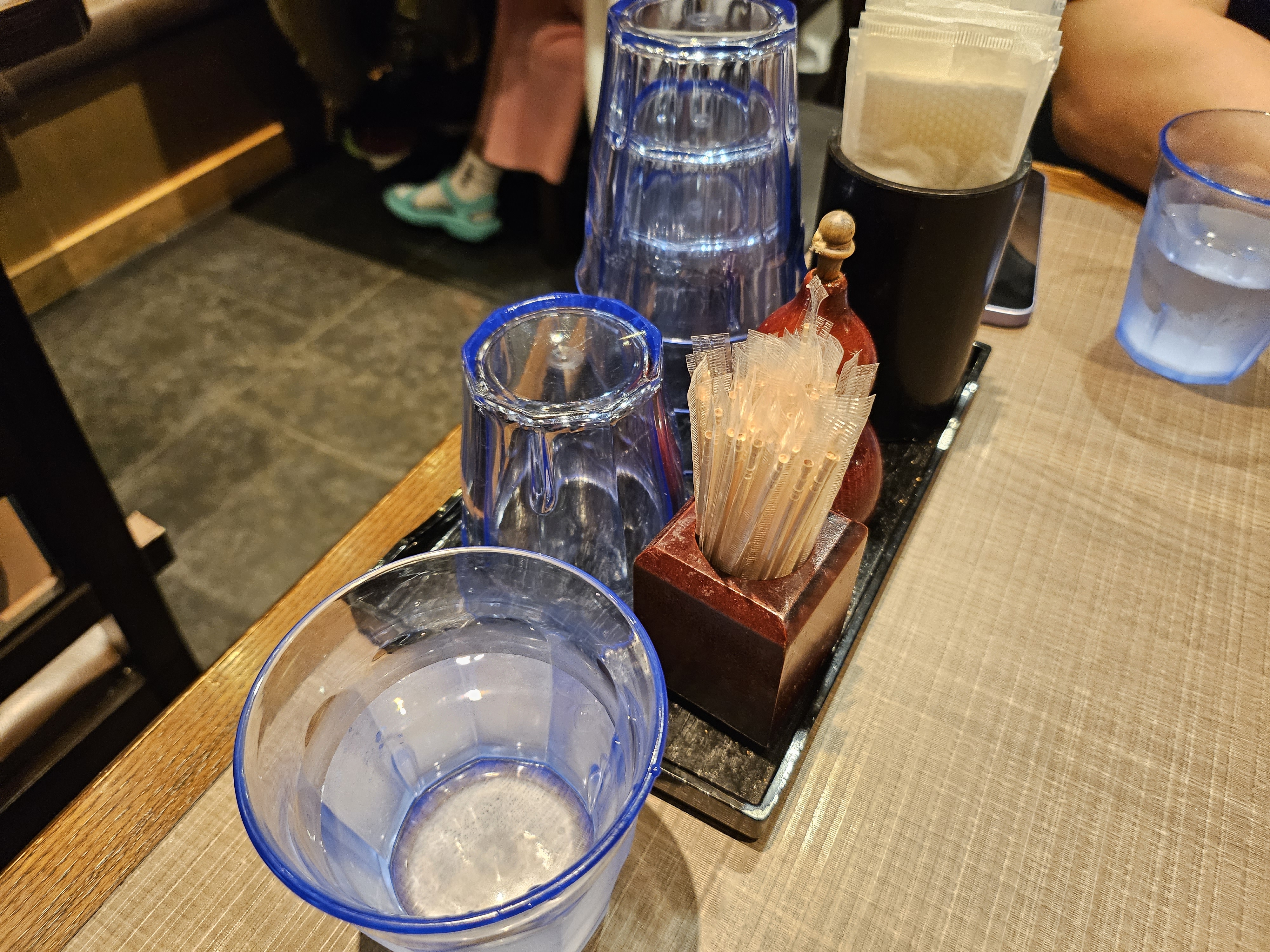 각 테이블마다 물과 이쑤시개 등이 이렇게 준비돼 있고요.