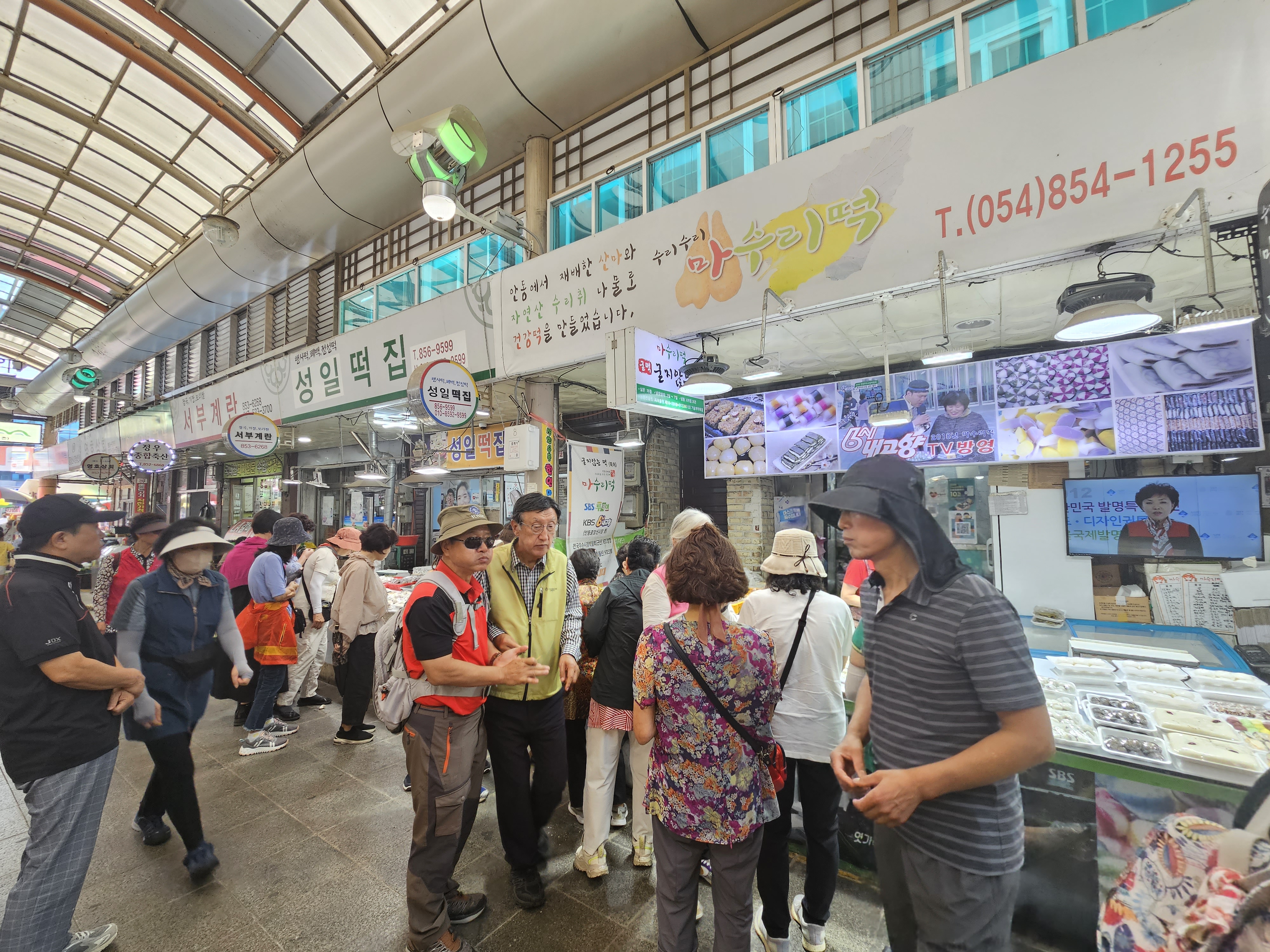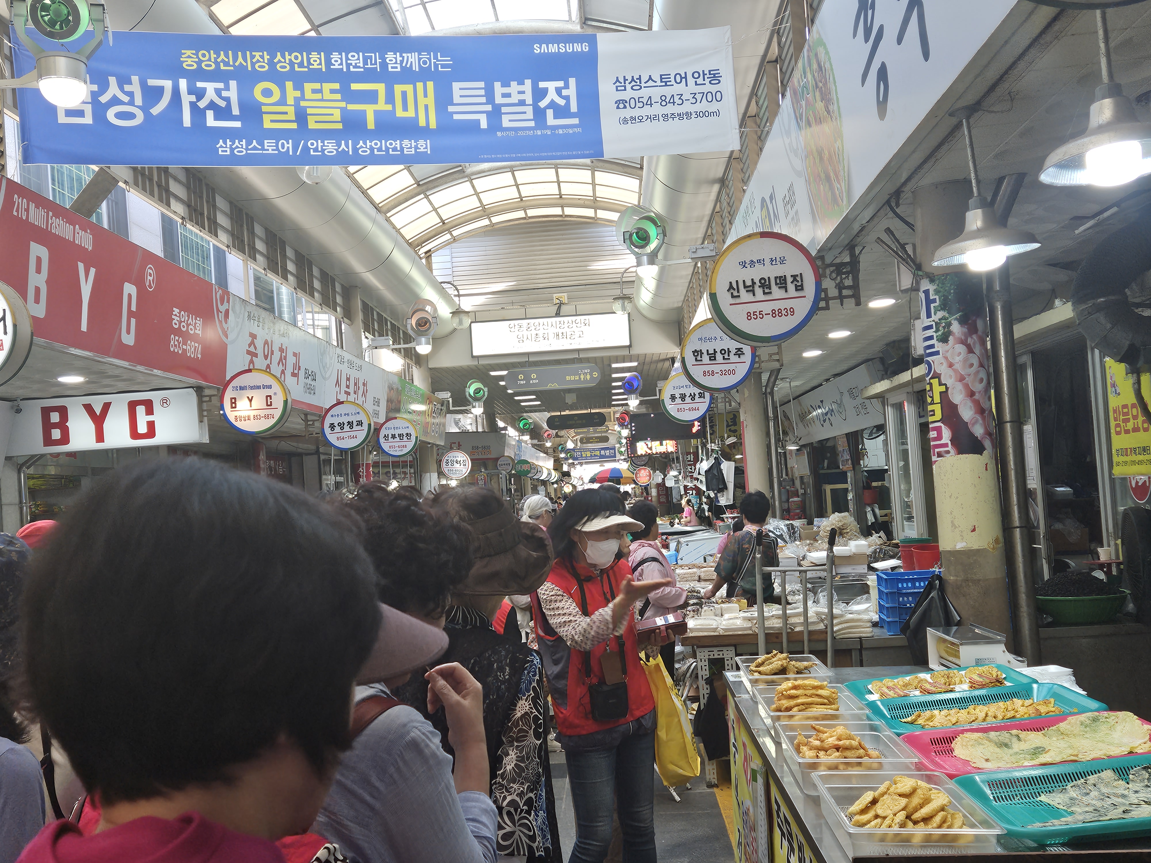 제가 방문했떤 날에는 서울에서 25명이 넘는 관광객분들이 버스로 안동 신시장을 찾아주셨습니다. 해설사님의 열정적이고 친절한 해설로 시장 투어가 시작되었습니다.