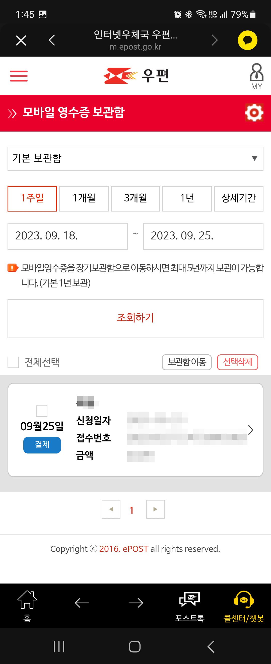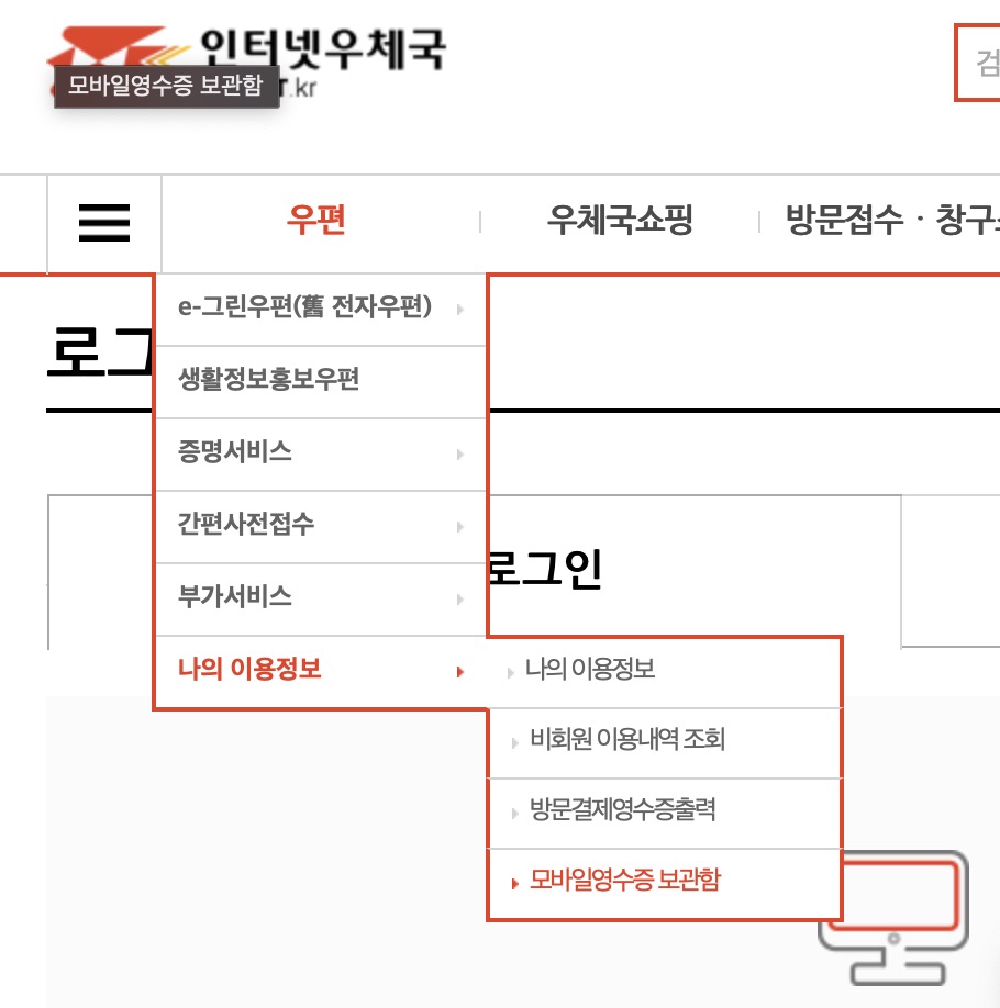 우체국 홈페이지에서 영수증 인쇄하기