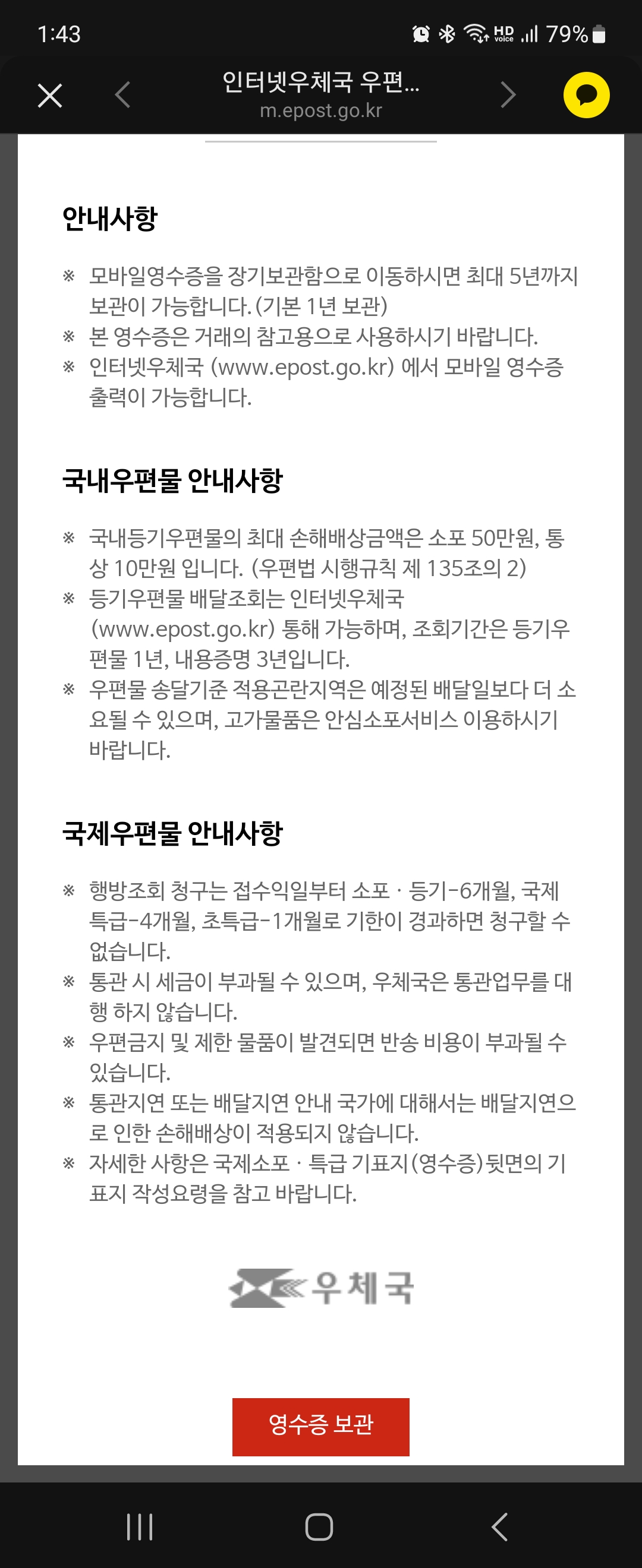 우체국 모바일영수증 인쇄하는 방법 (영수증보관함)