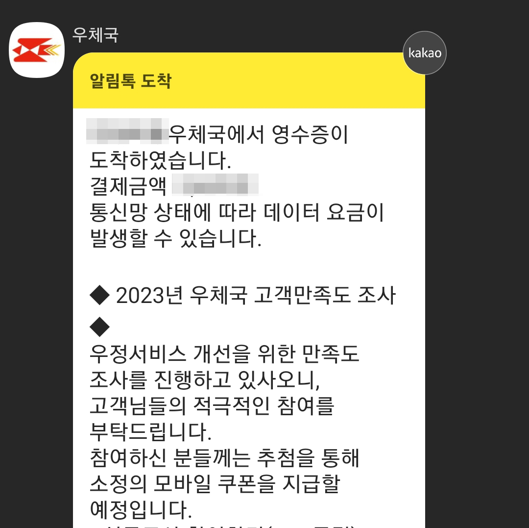 우체국에서 소포나 서류 우편을 보내고나서 영수증을 출력해야하는 경우가 있습니다. 요즘 우체국에서는 전화번호로 연결된 카카오톡으로 모바일 영수증을 주는데요. 그냥 개인적인 일처리에서는 이걸로도 충분하겠지만, 영수증 처리를 해야하거나 영수증 결과물을 회사에 제출해야하거나 개인사업자로서 나중에 경비처리 또는 비용처리를 하려면 영수증화 해두는게 좋기 때문에 이때에는 오히려 모바일 영수증만 주는게 조금 불편할 수도 있습니다.