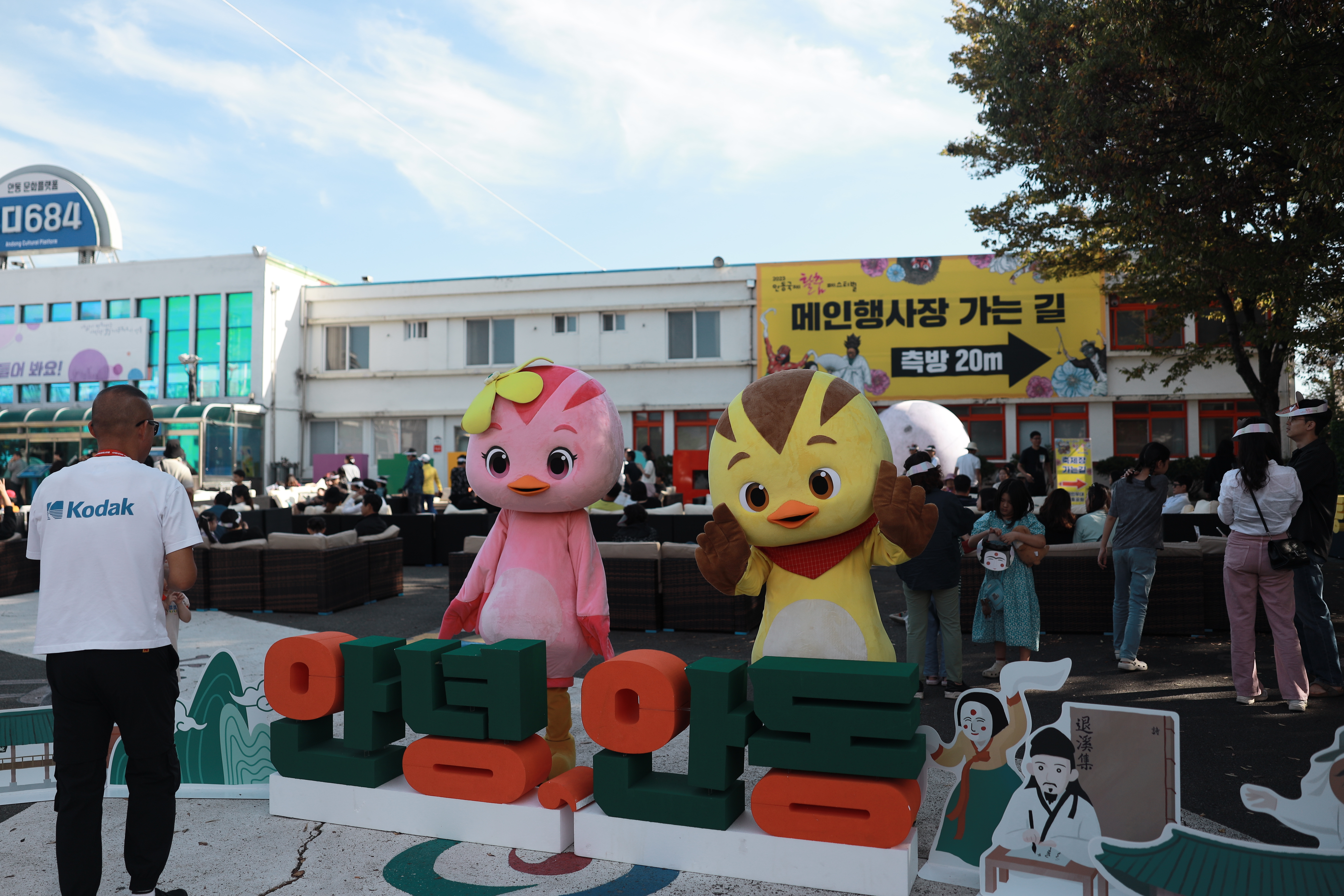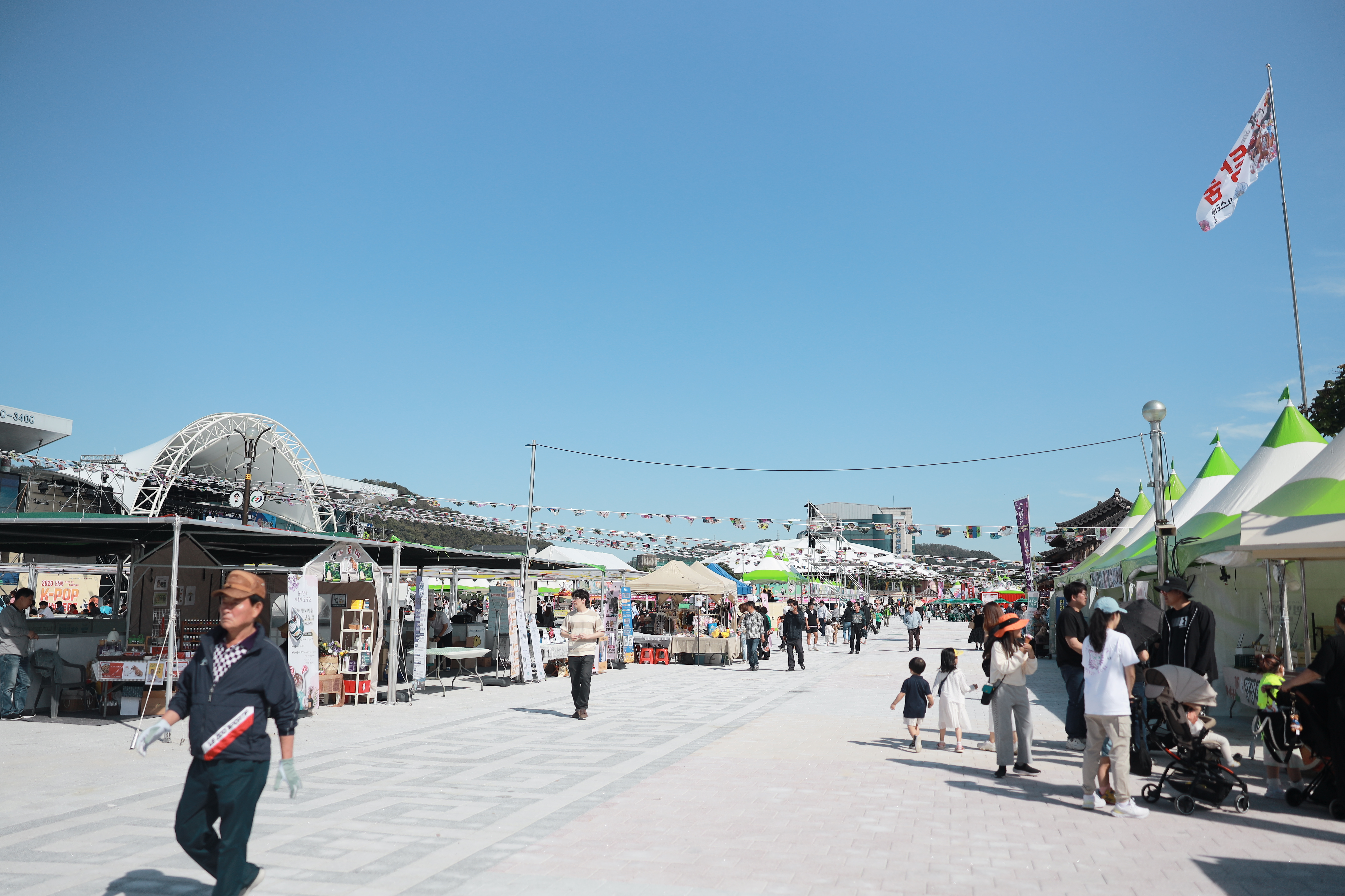 구 안동역(현재 모디684)쪽에는 무대가 마련돼 있어서 다양한 레크레이션과 행사가 열리는 모습이었어요. 축제 참가자들이 편하게 즐길 수 있는 공간입니다.