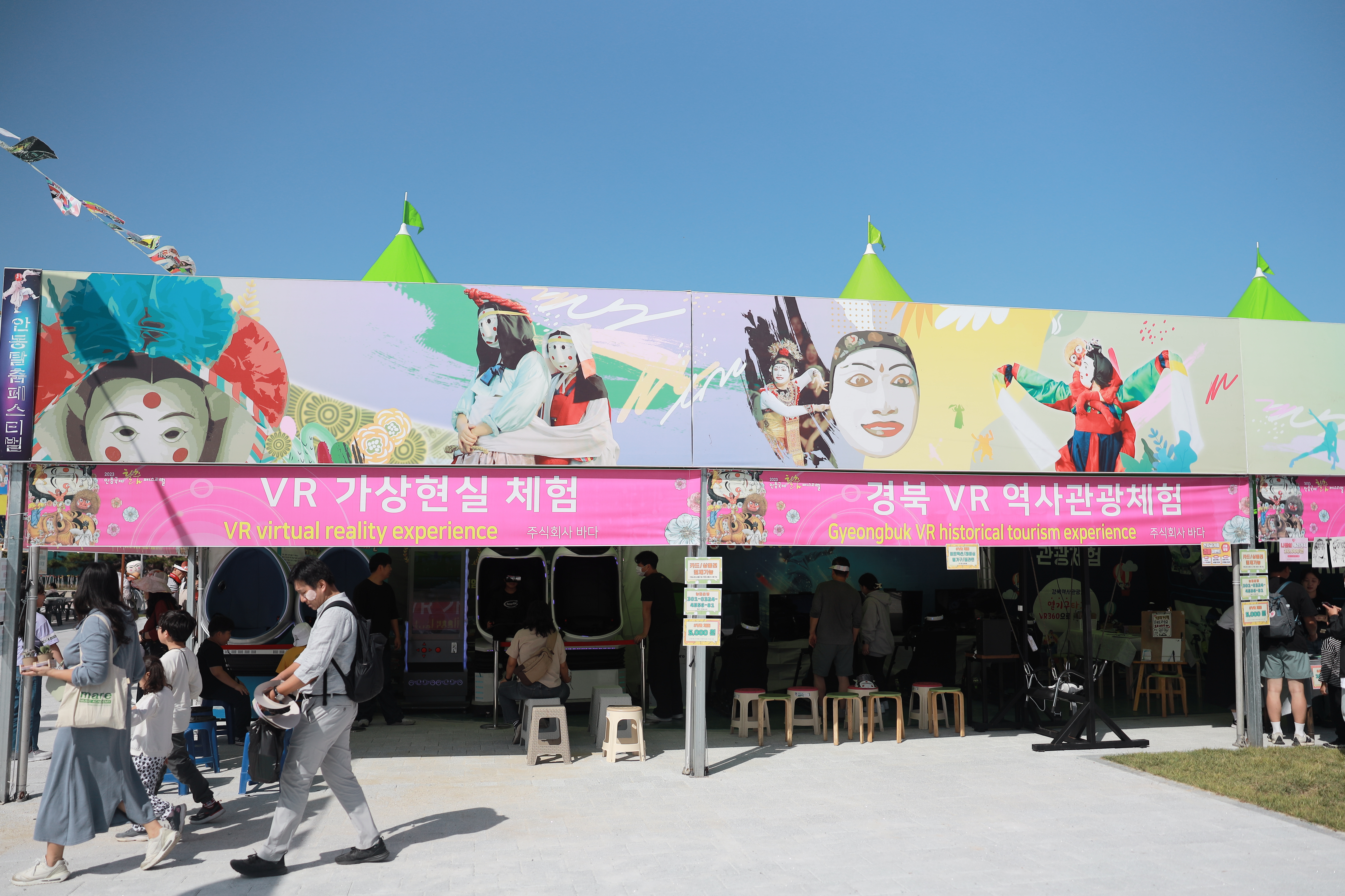 탈춤공원에는 다양한 체험부스들이 많이 보였는데요. 탈춤 따라배우기부터 마스크 만들기 체험, VR 체험 등 다양하고 재미있는 체험거리들이 많이 준비돼 있었습니다.