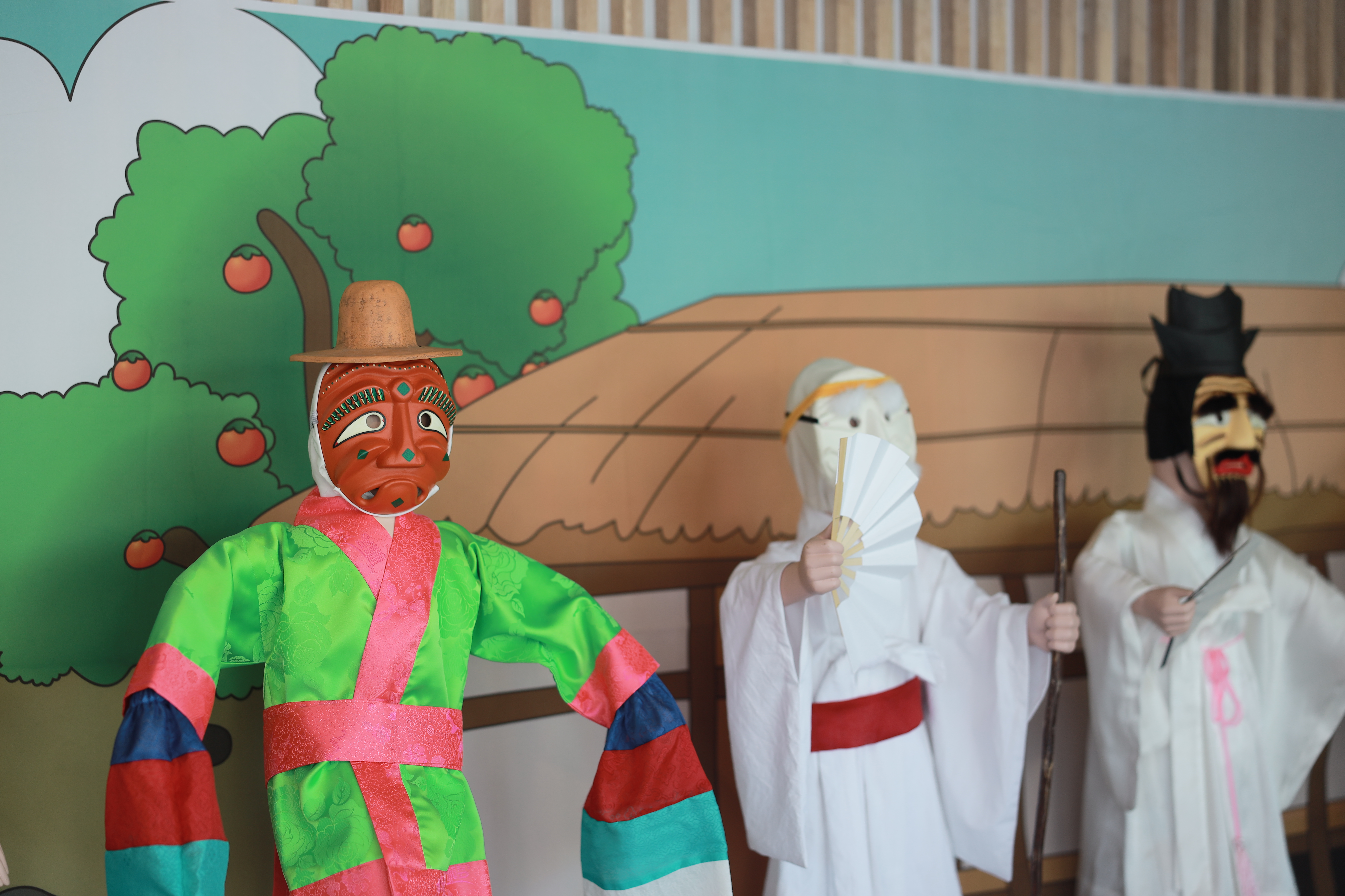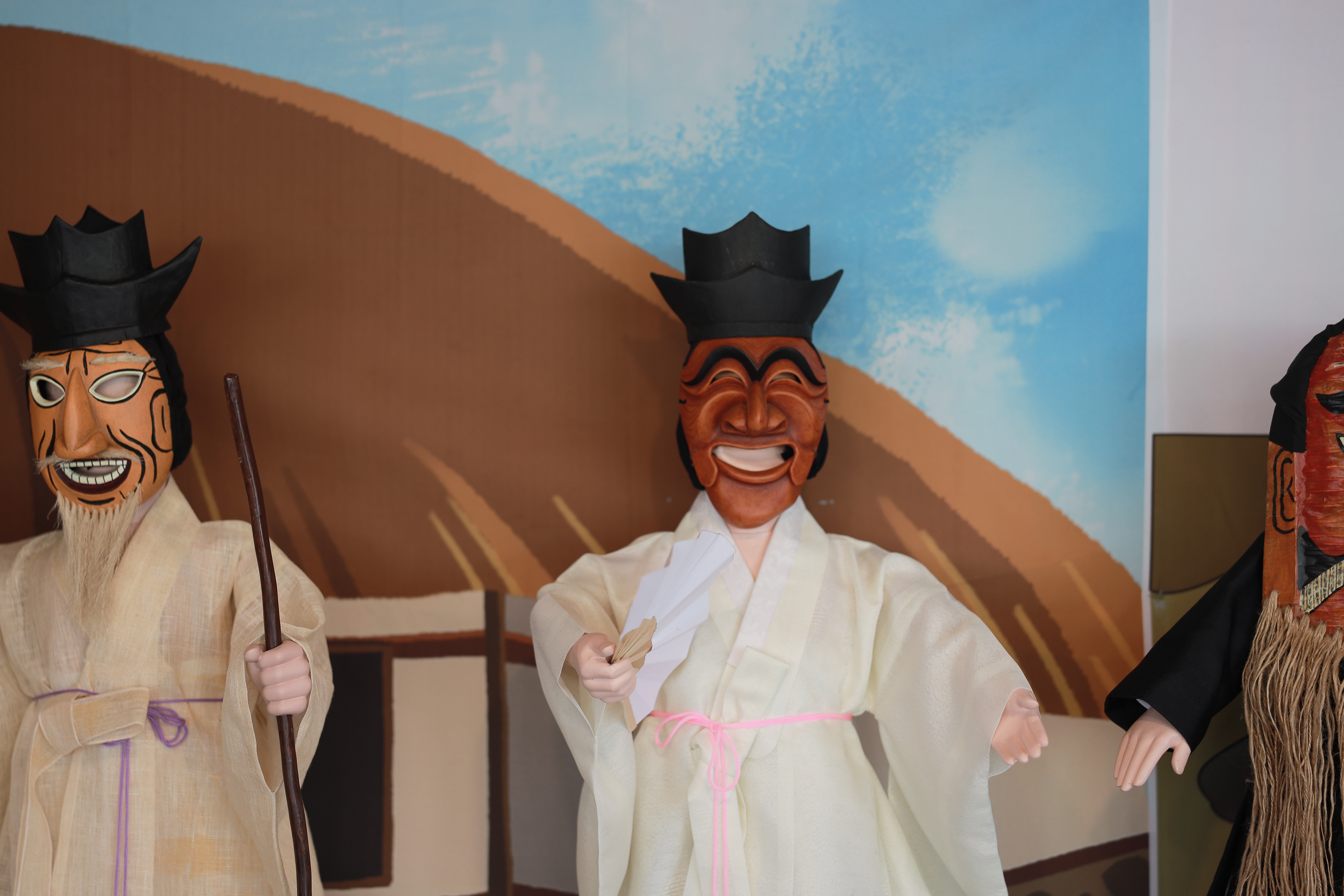 먹거리존 입구쪽에 있는 안동탈춤 홍보관에 방문하시면 우리나라 탈의 역사라던지 하회탈 모형 등을 볼 수 있고, 탈춤의 문화와 역사에 대해 학습할 수 있습니다.