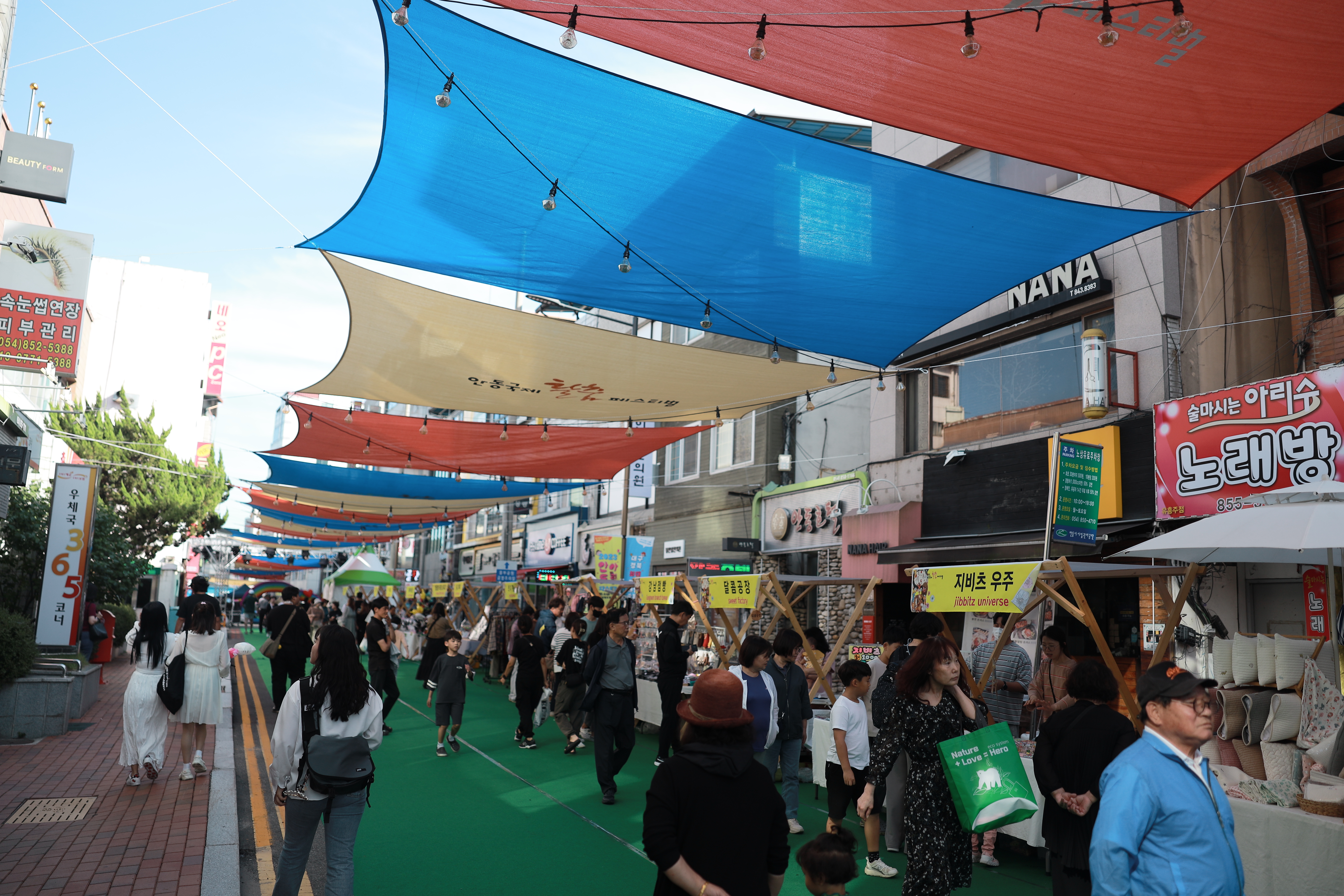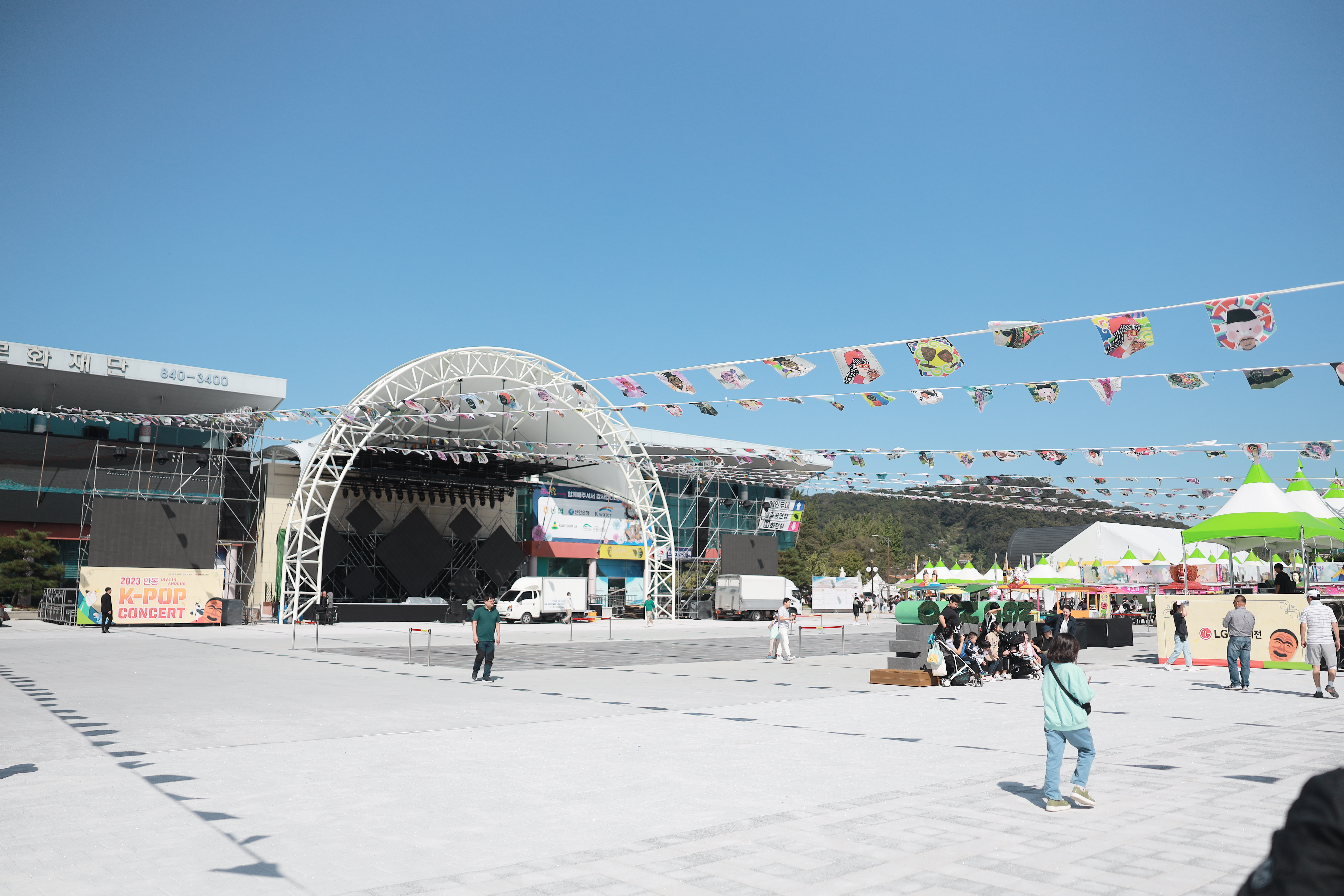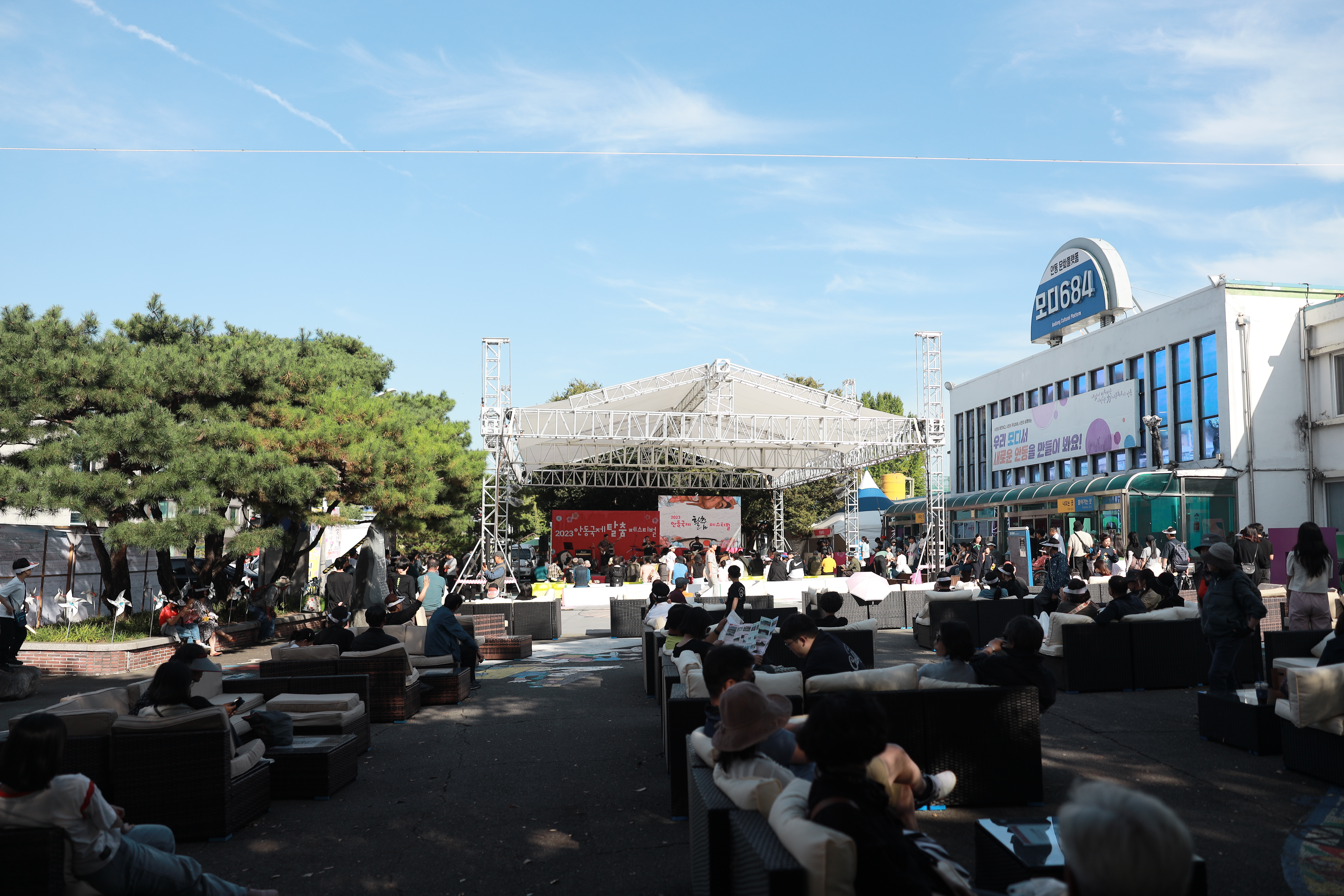 구 안동역(현재 모디684)쪽에는 무대가 마련돼 있어서 다양한 레크레이션과 행사가 열리는 모습이었어요. 축제 참가자들이 편하게 즐길 수 있는 공간입니다.