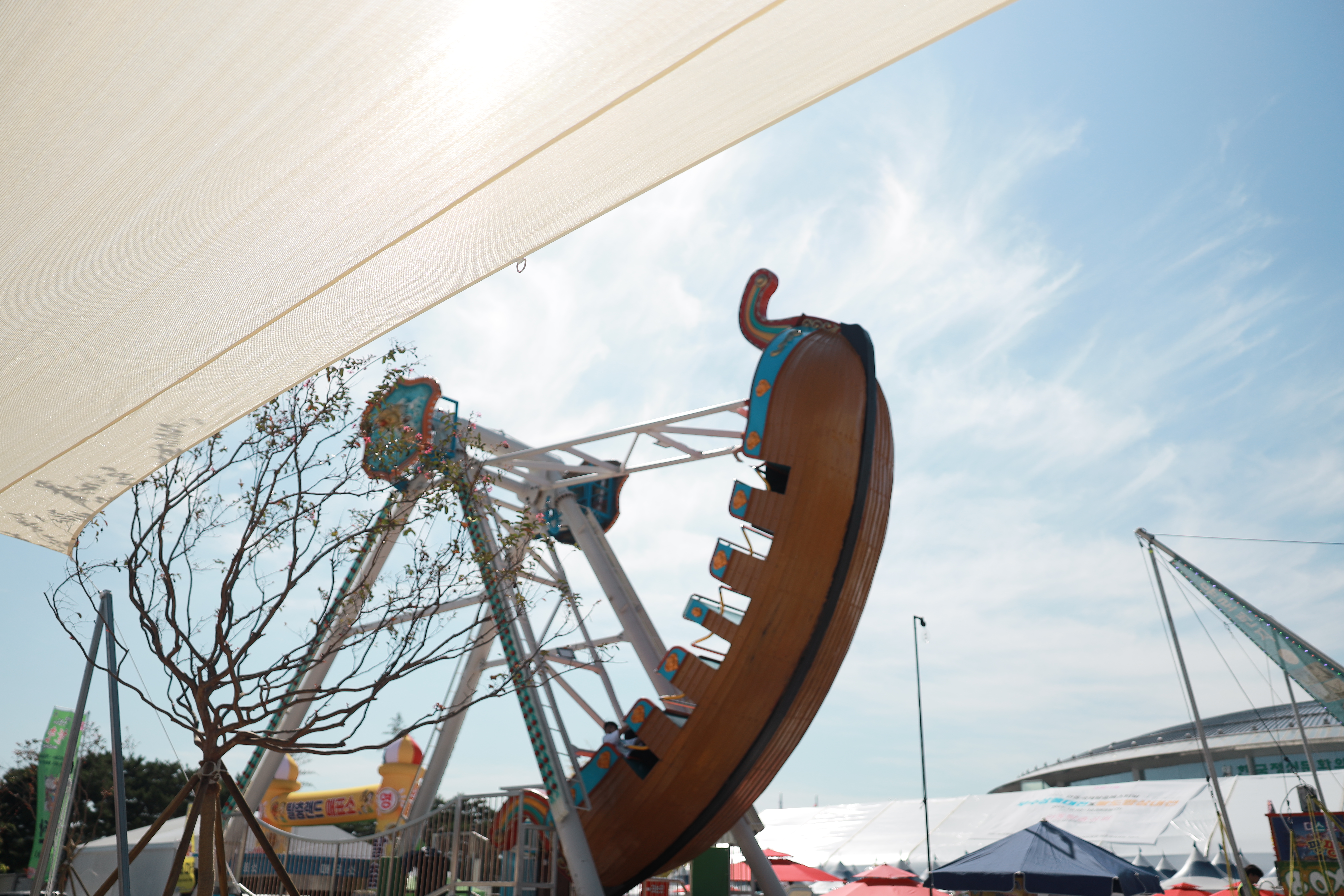 탈춤공원에는 푸드트럭과 편의점 부스가 있고, 아이들이 즐기기 좋은 바이킹 등의 놀이시설이 준비돼 있었고요.