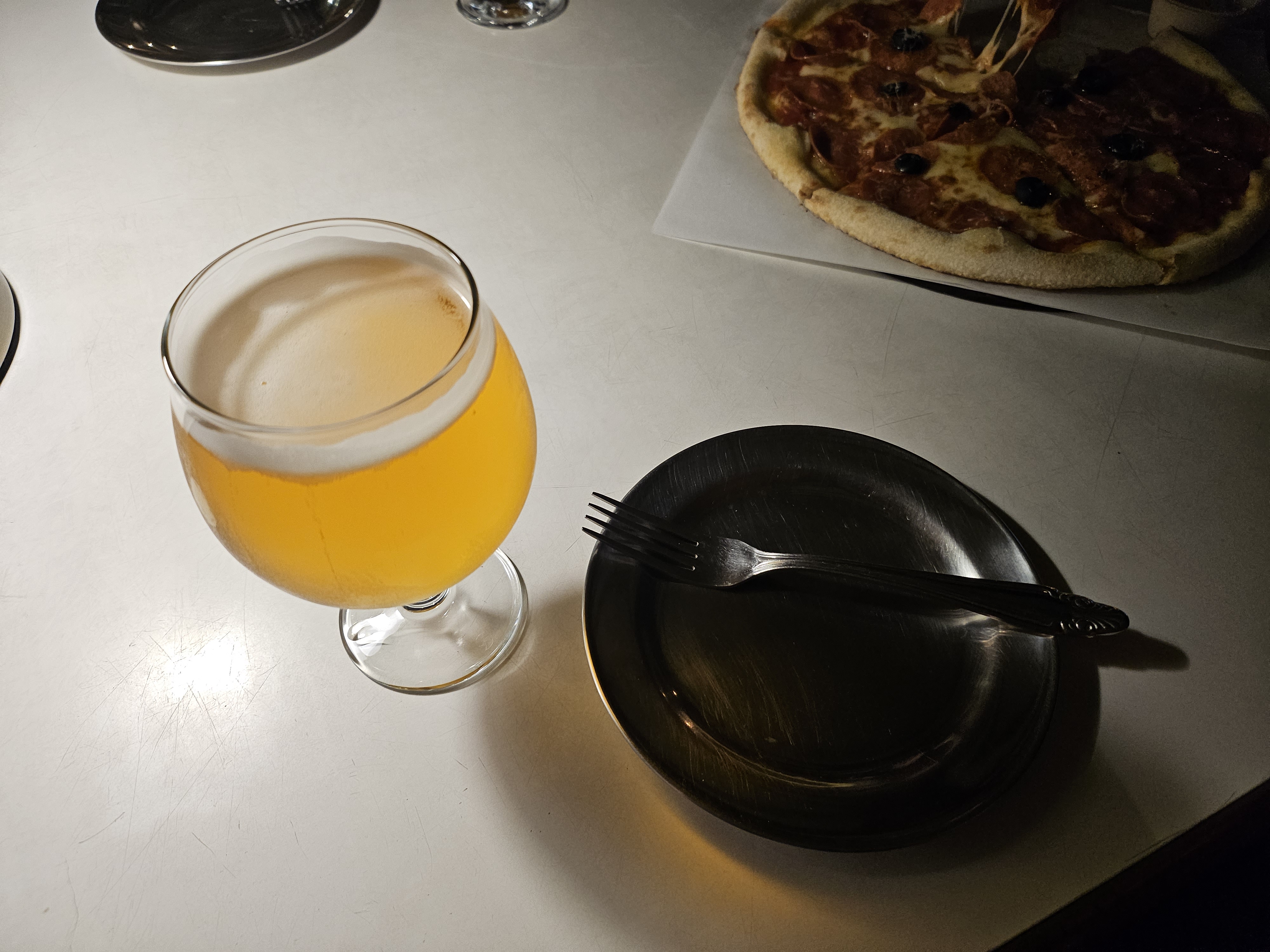 개인적으로 피자를 좋아하기도 하고 맥주랑 피자 먹는 피맥도 좋아하는데 여기는 분위기도 좋고 해서 피자가 더 맛있게 느껴졌던 것 같아요. 실내가 꽤 어두운 느낌인데 오히려 분위기를 더 잘 살려주는 것 같았어요.