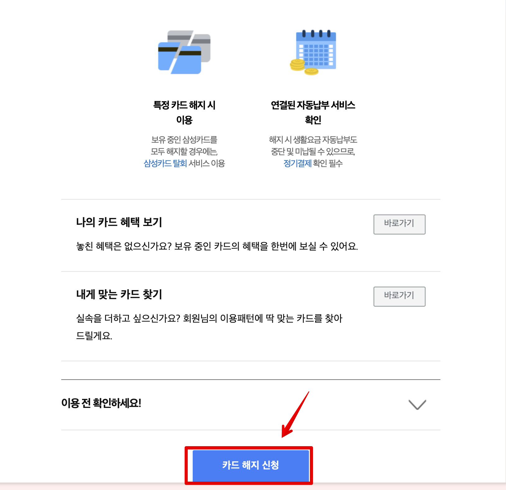 삼성카드 홈페이지에서 삼성카드 해지하는법