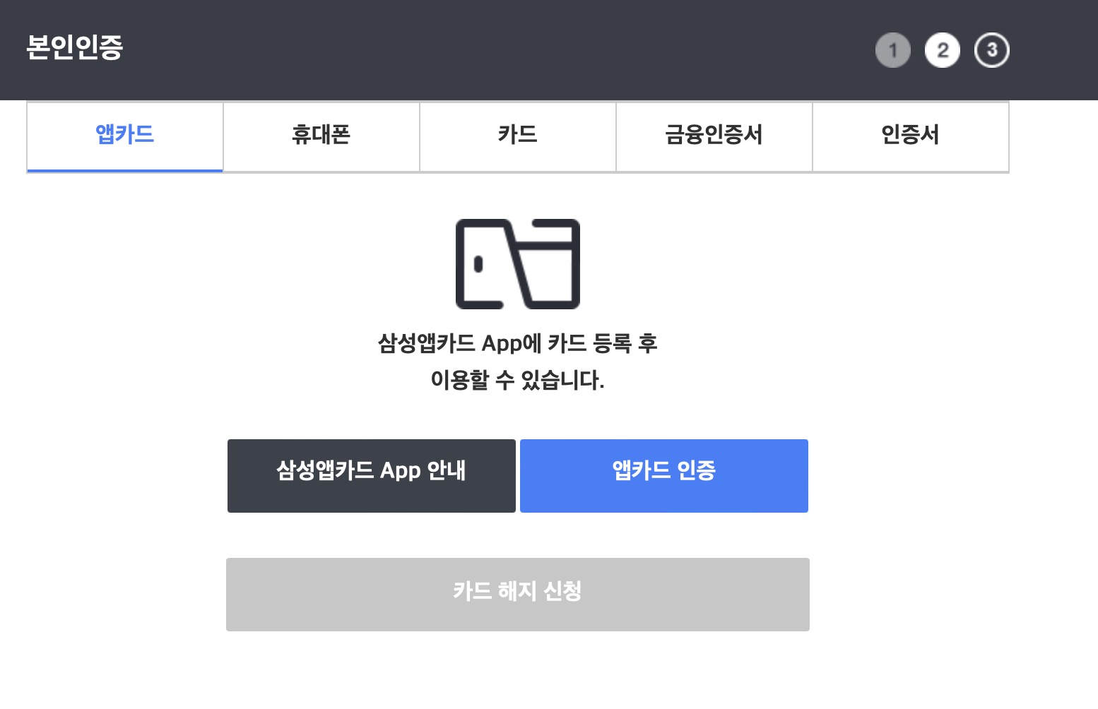 마지막으로 다시 한 번 로그인을 통해 본인인증을 해주는데요. 저는 앱카드 인증을 주로 이용합니다.