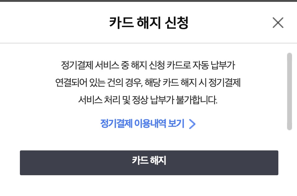 카드해지신청이 완료되기 전 마지막 페이지입니다. 정기결제가 붙어있을 경우 정기결제도 해지하고 옮겨주어야합니다.