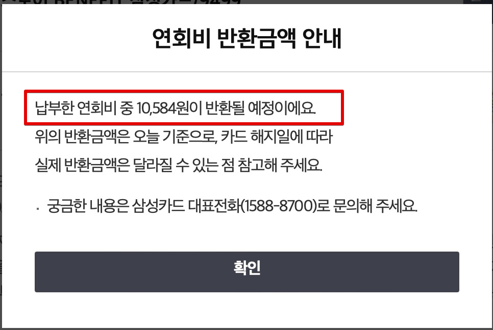 연회비 반환 금액을 미리 확인할 수 있습니다.