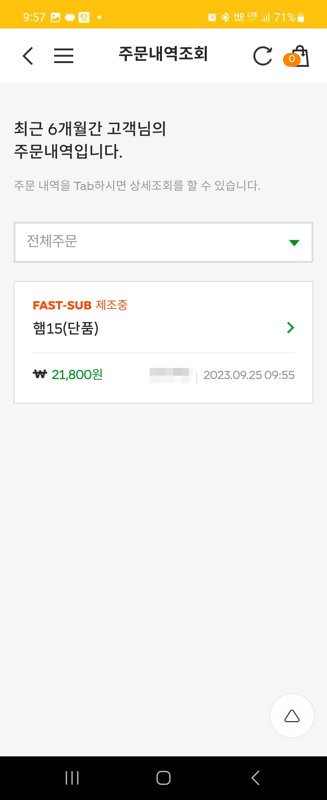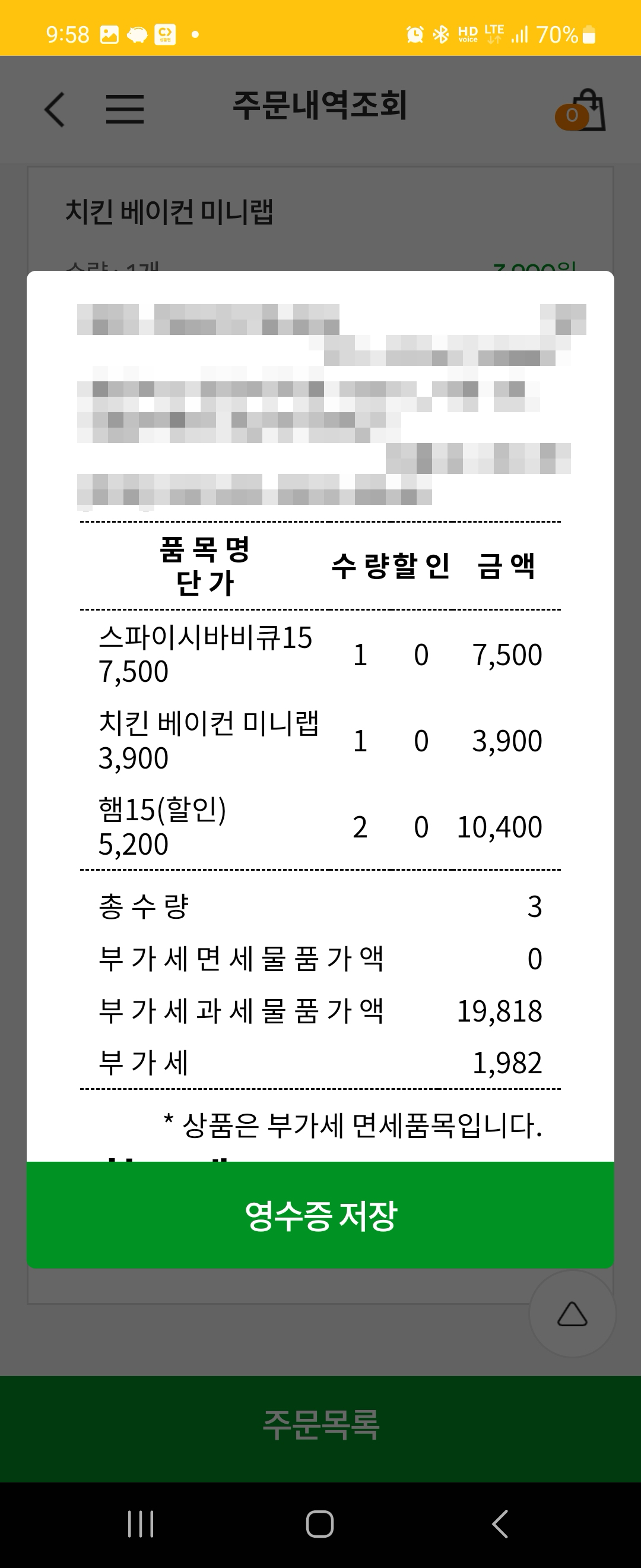 서브웨이 앱이 좋은게 이렇게 영수증도 볼 수 있어서 여러개를 주문했을 때 가격이 얼마이고 수량이 어떻게 되는지도 확인할 수 있습니다.