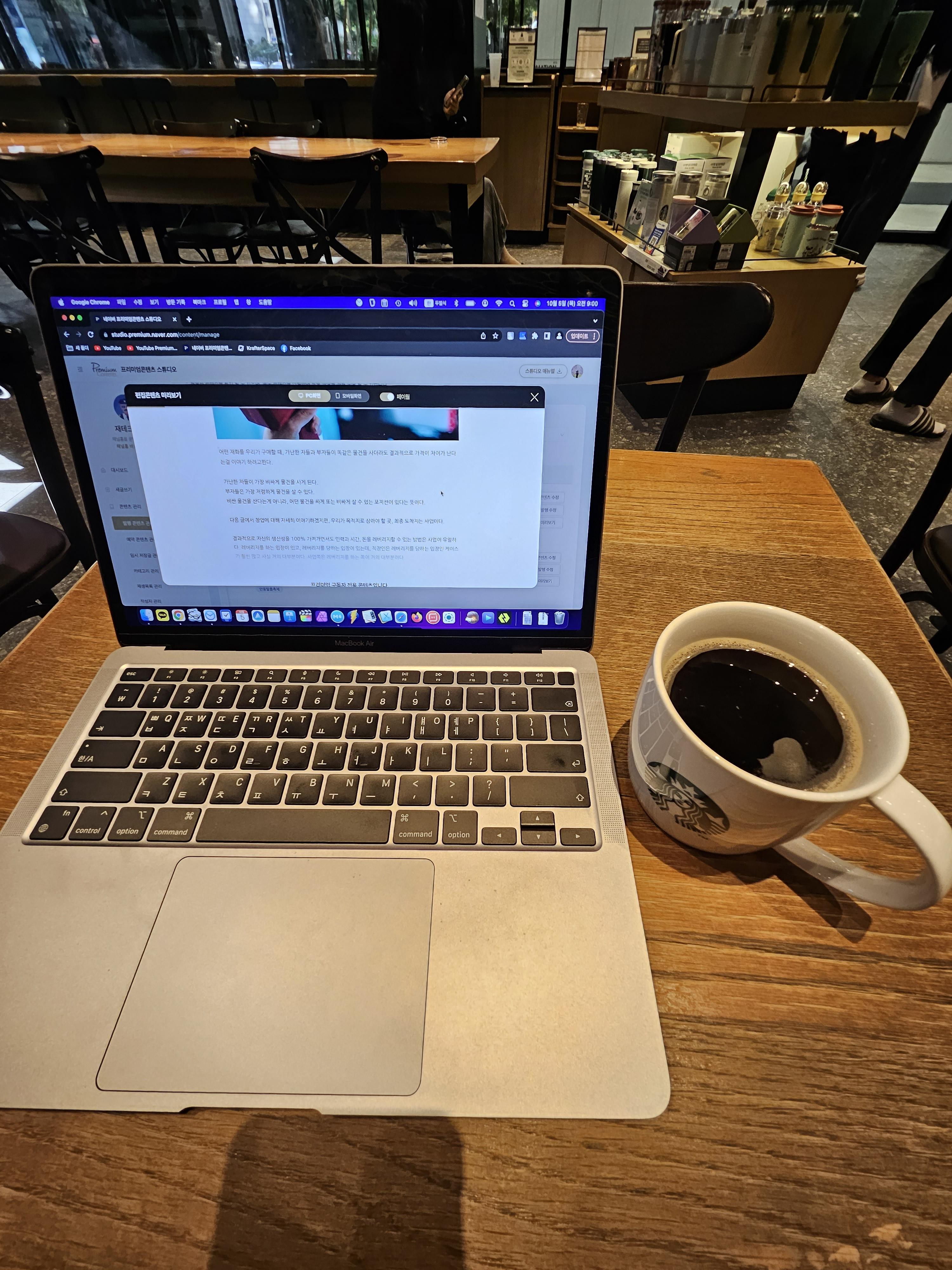 혹시 길을 못찾거나 지하철이 조금 딜레이 되거나 하는 경우가 발생할까봐서 주변에 여유있게 도착하였는데 시간이 남아서 주변에 있는 스타벅스에서 간단하게 커피 한 잔 하면서 노트북으로 글쓰기를 조금 하면서 시간을 보냈습니다.