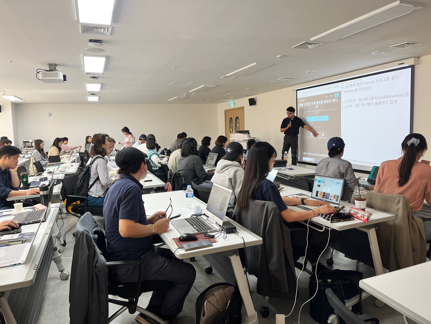 강의실이 꽤 넓은 편이었지만 워낙 많은분들이 오셔서 강의실이 북적북적하였습니다. 담당자분께서 말씀해주시기로, 강의실의 옆면을 터서 오픈한건 오랜만이라고 하시더라고요. 확실히 영상 제작이나 숏폼 크리에이티브에 대한 인기가 많은 듯 합니다.