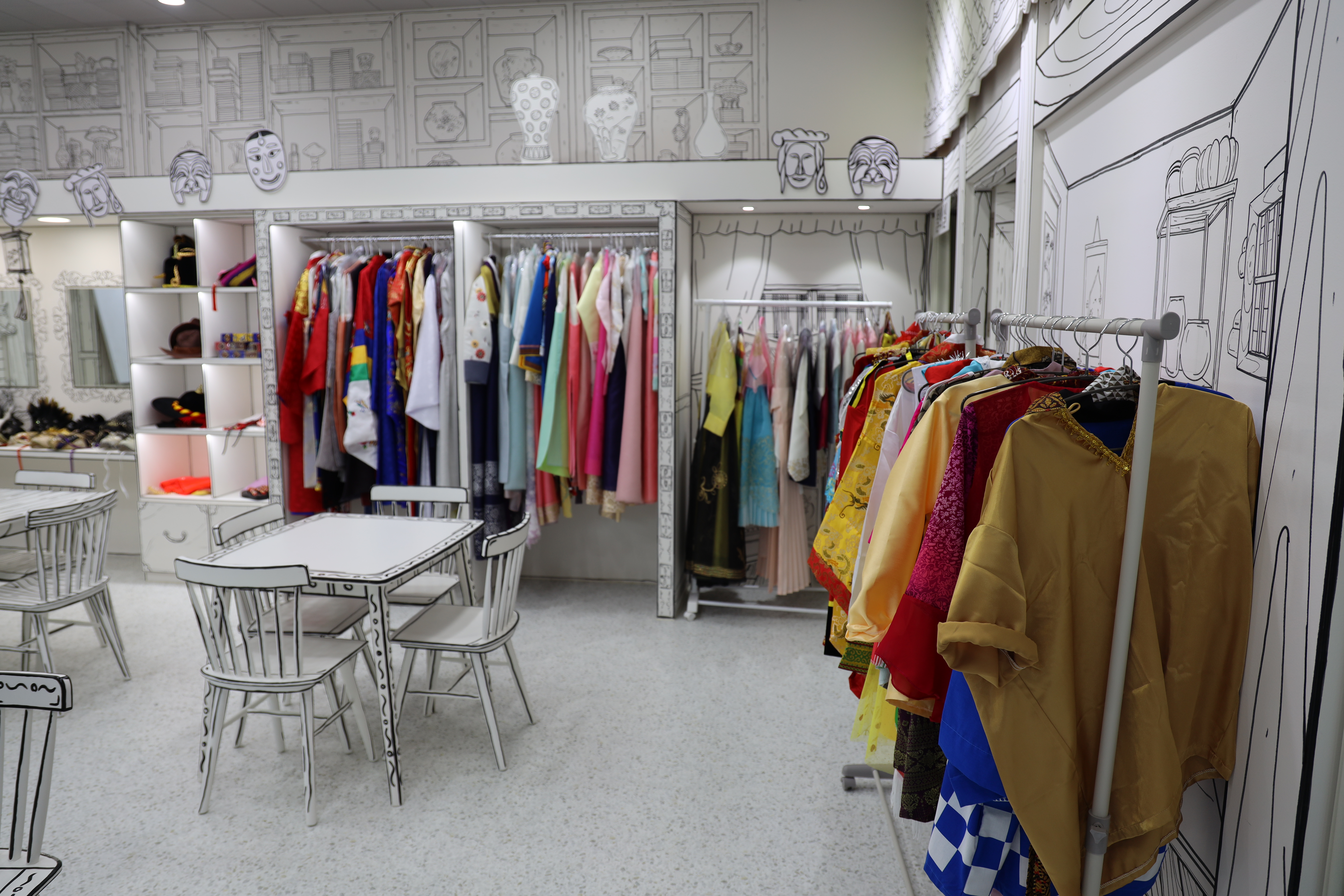 의상체험관이 있어서 가보았습니다. 여러 가지 한복과 복식 스타일을 무료로 대여할 수 있는 곳이었는데요.