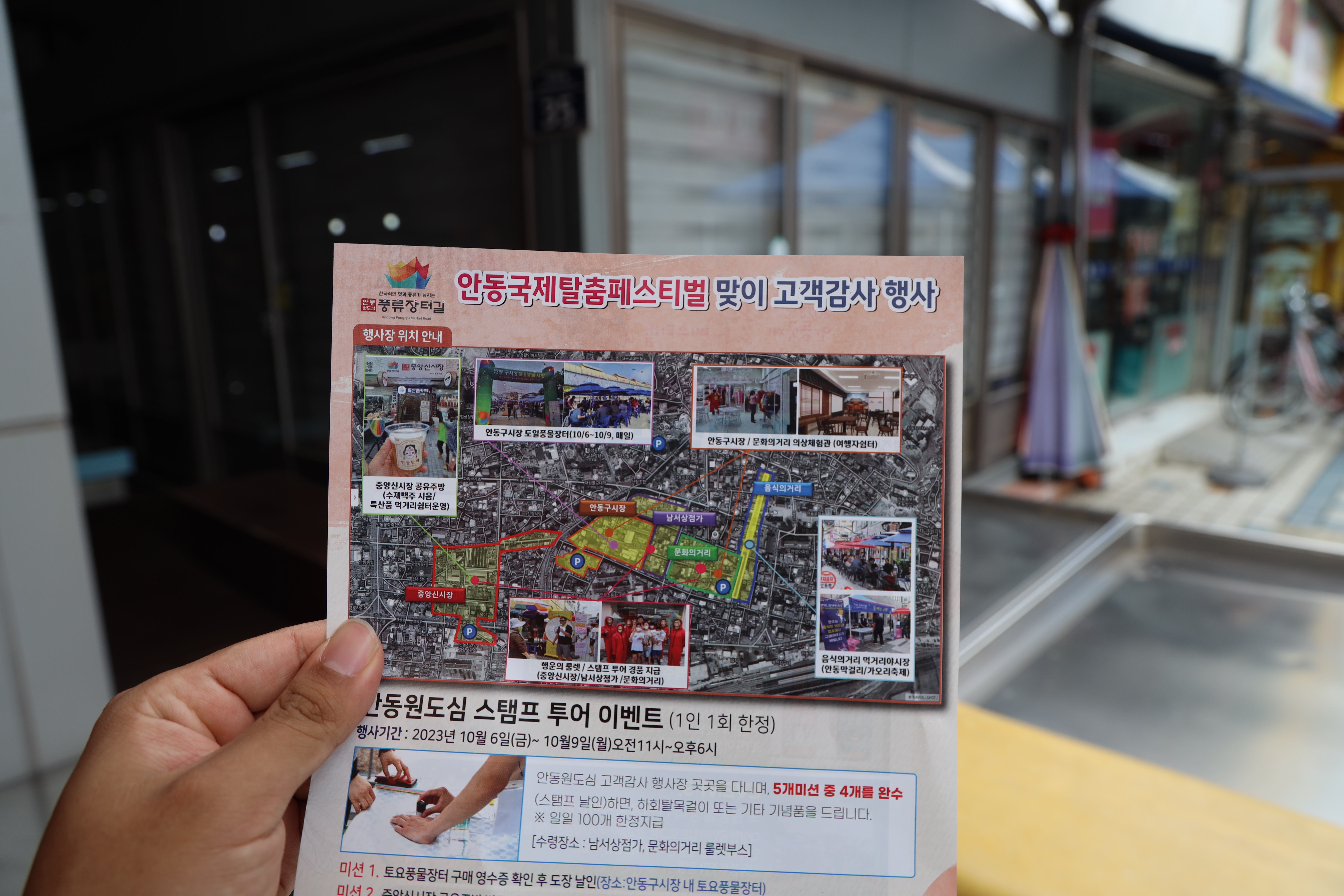 안동 탈춤공원과 안동 원도심 일원에서 안동국제탈춤페스티벌이 열리고 있는데요. 축제를 맞이하여 안동 원도심 일원에서 고객감사 행사와 안동원도심 스탬프 투어 이벤트가 열리고 있다고 해서 현장에 다녀왔습니다.