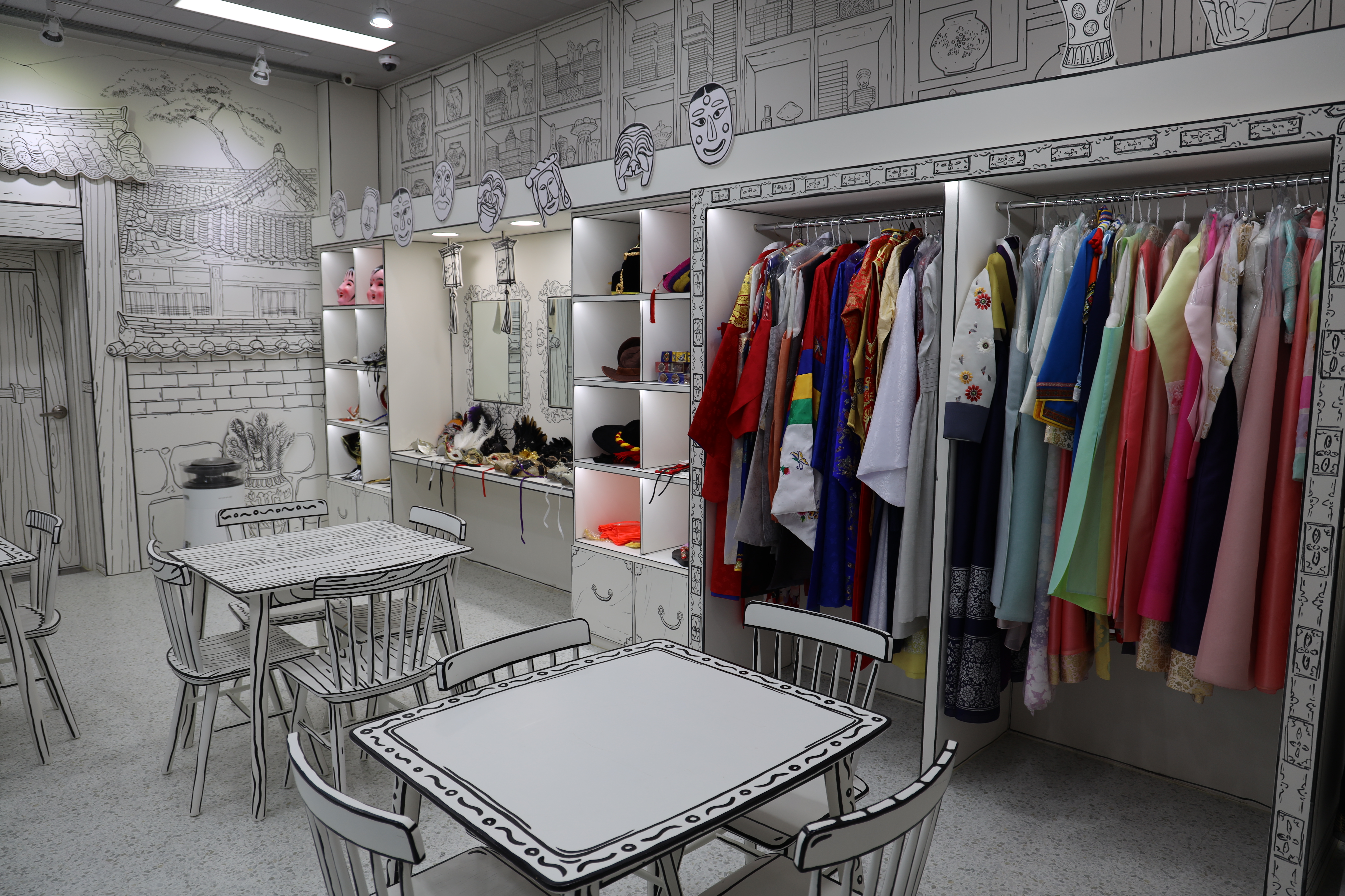 탈춤축제 기간에 맞에 여러 가지 가면들도 대여가 가능했어요. 그리고 의상체험관 안에 포토머신이 있는데 이미지 사진을 찍을 수 있는 기계가 있어서 기념사진을 남기기에도 좋은 환경이었습니다.