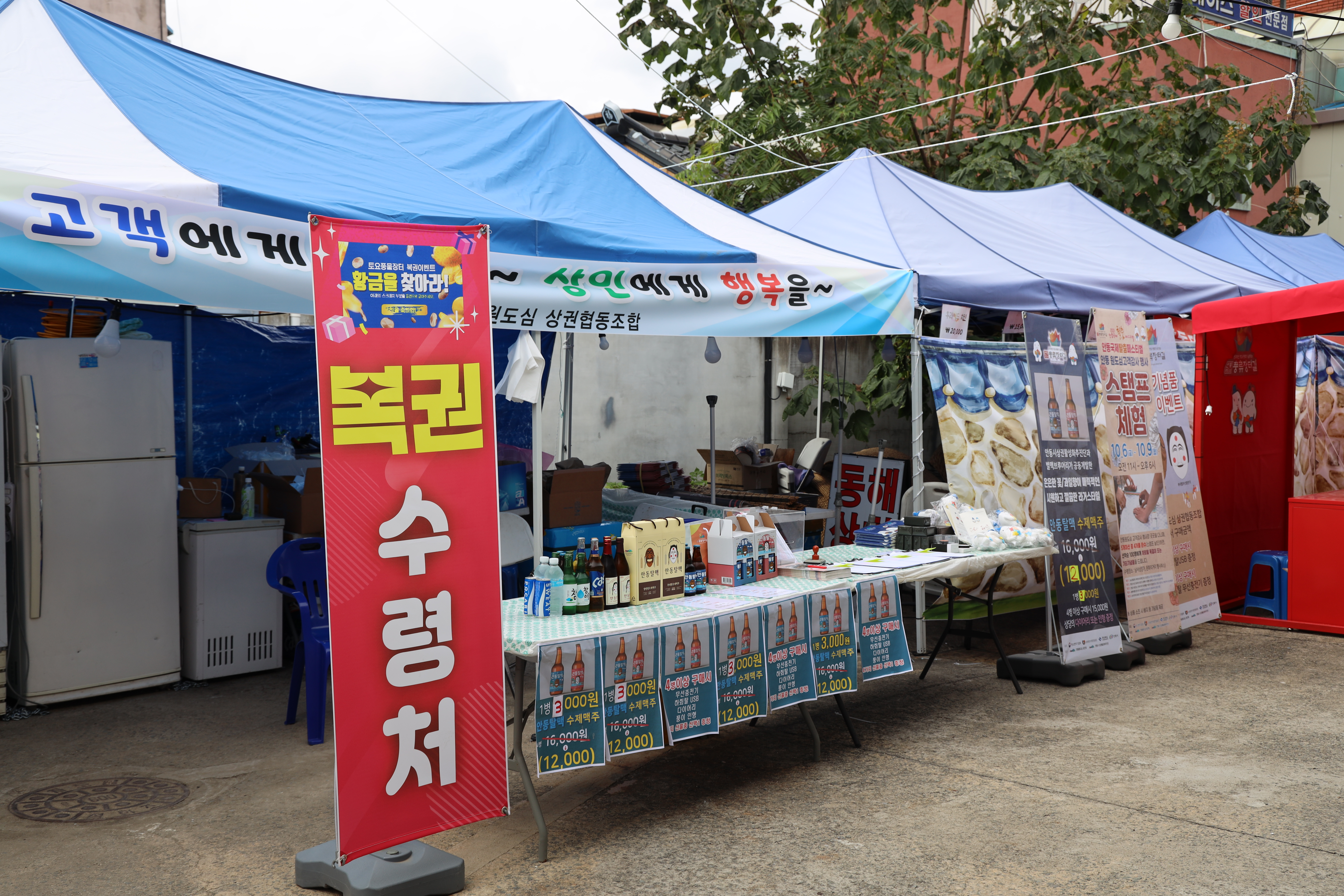 고객감사 행사는 크게 4개의 이벤트가 있었는데요. 100% 당첨되는 행운의 룰렛과 안동 수제맥주 시음 및 원도심 상품 즈정, 그리고 토일풍물장터 행사, 그리고 음식의거리에서 열리는 가오리축제가 있었습니다.