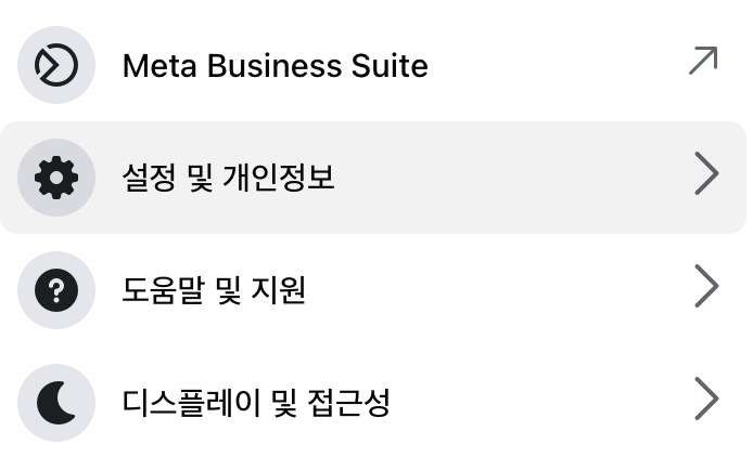여기에서 아래쪽에 [설정 및 개인정보]를 클릭합니다.