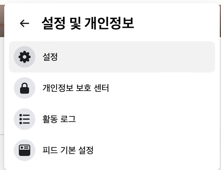 설정 및 개인정보 창이 나타나면 여기에서 [설정]으로 들어갑니다.