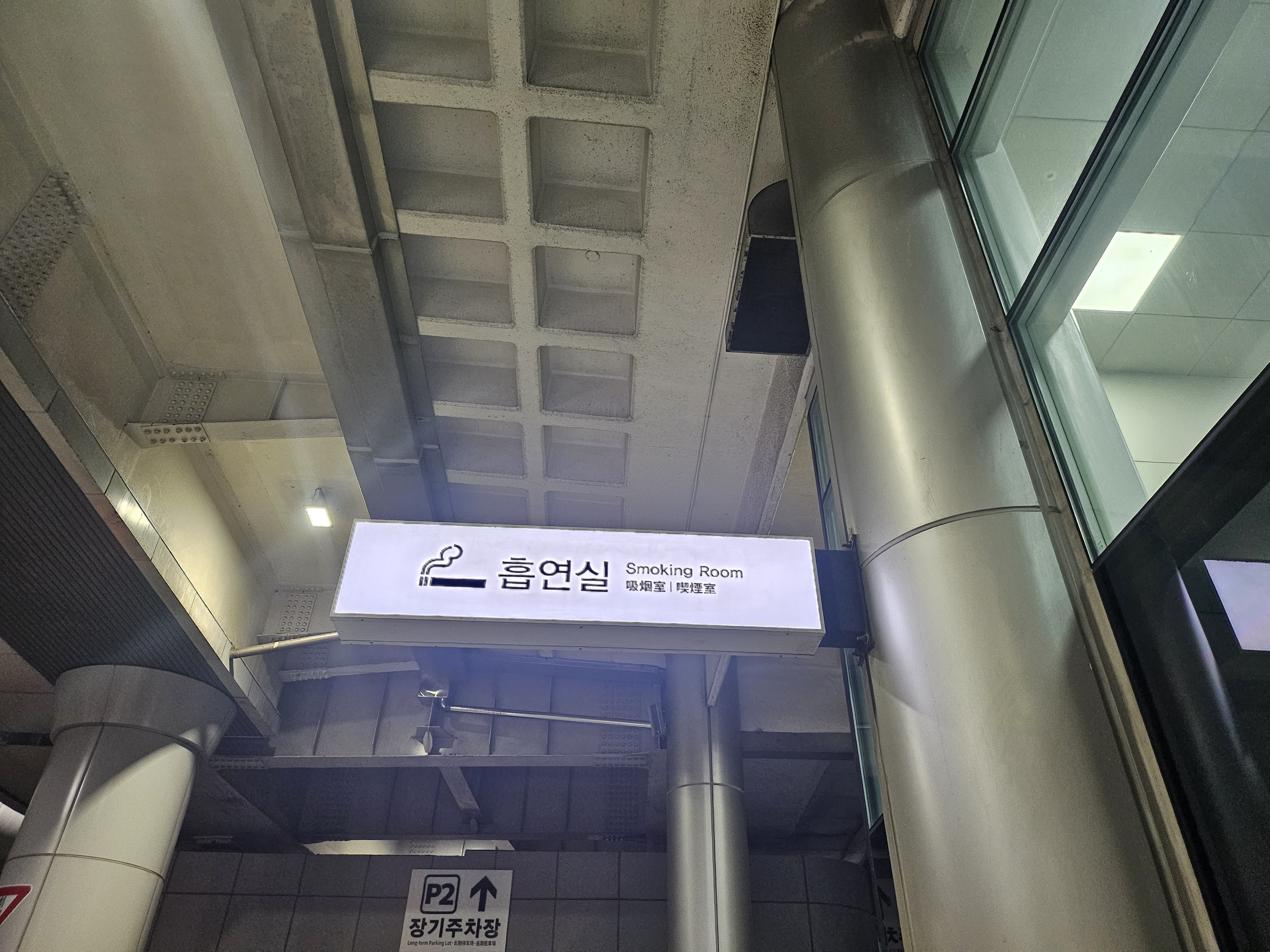 제주공항 1층에 흡연실이 양쪽 끝쪽에 자리 잡고 있는데요.