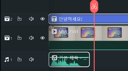 이렇게해서 완성된 텍스트 음성변환 결과물은 타임라인에서 영상 아래쪽에 자동으로 배치되며 글자 수 길이에 따라 길이가 정해집니다.