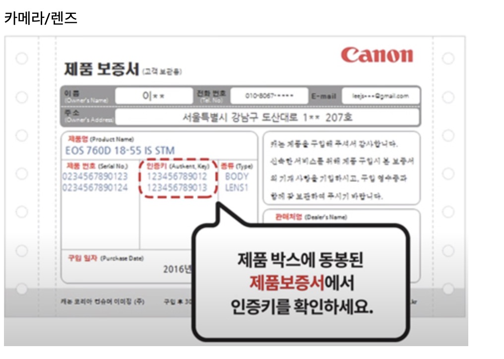 캐논 카메라 렌즈 정품 등록하는 방법 + 보증기간 조정요청 방법