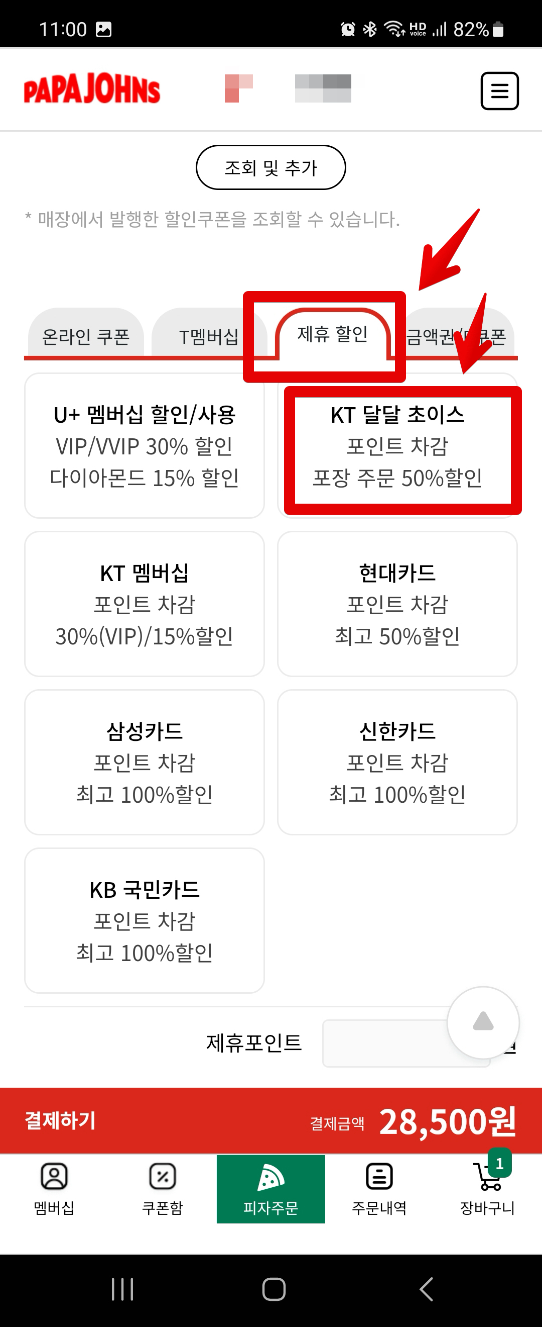 KT멤버십 11월 달달혜택 파파존스 50% 할인받는법