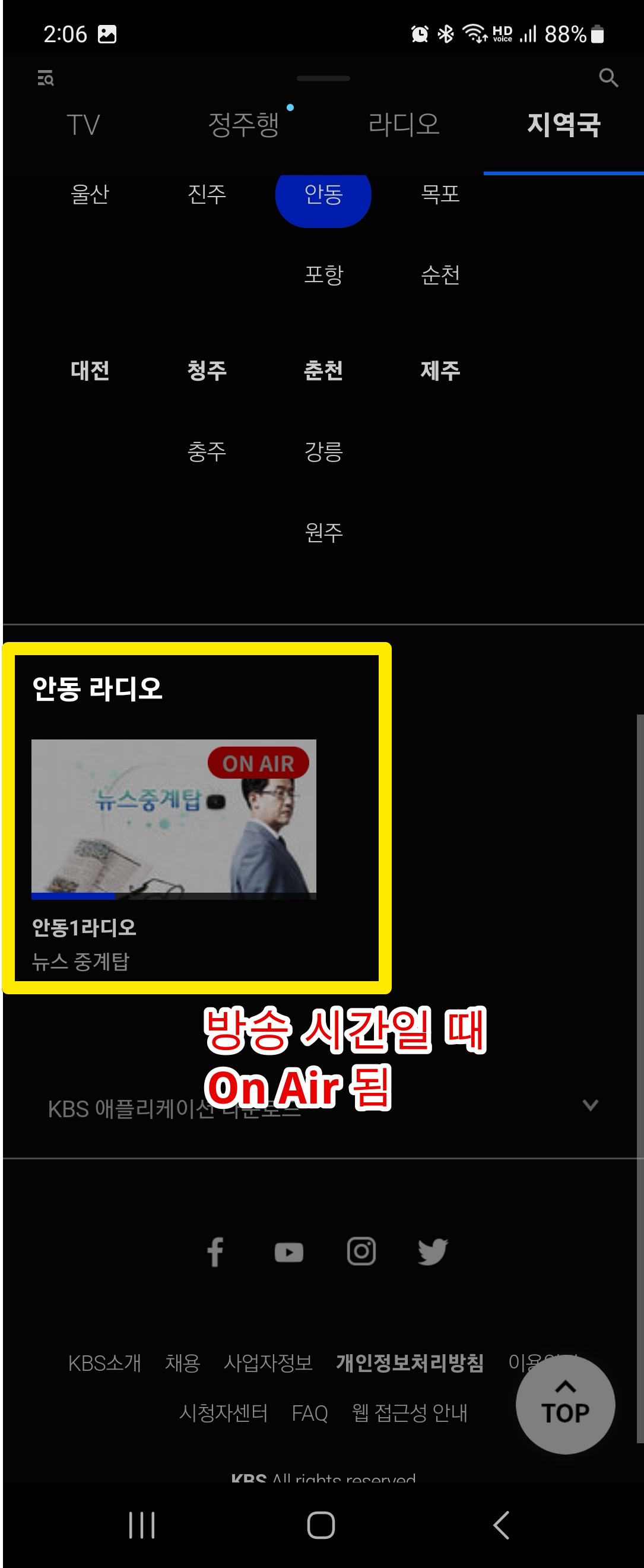 KBS 라디오 지역국 스마트폰으로 라디오 듣는법 (안동 KBS 기준)