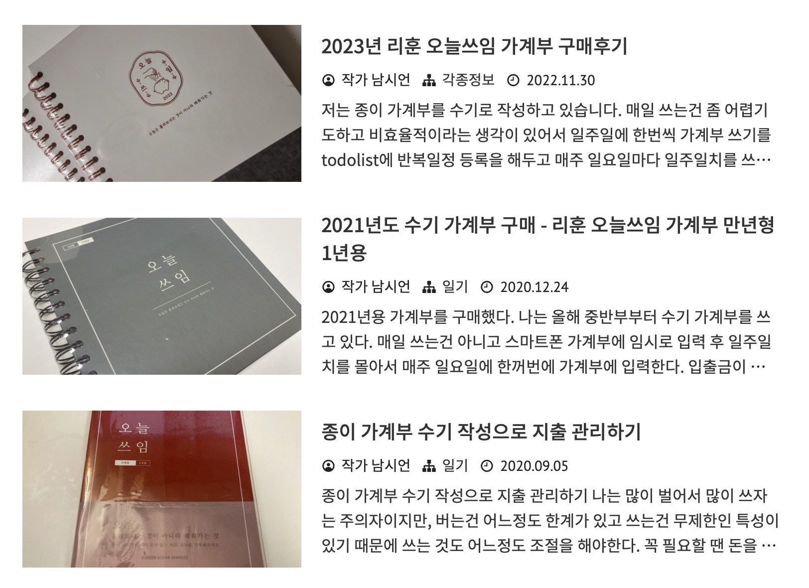 지금까지 블로그에 가계부 구매 후기 올렸던 블로그 포스팅