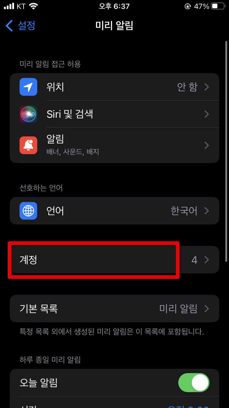 이렇게 해주면 마지막에 미리알림을 체크해서 연결을 해줄 수 있습니다. 여기까지 하게되면, 마이크로소프트 To do와 맥의 미리알림이 연동되게 됩니다.