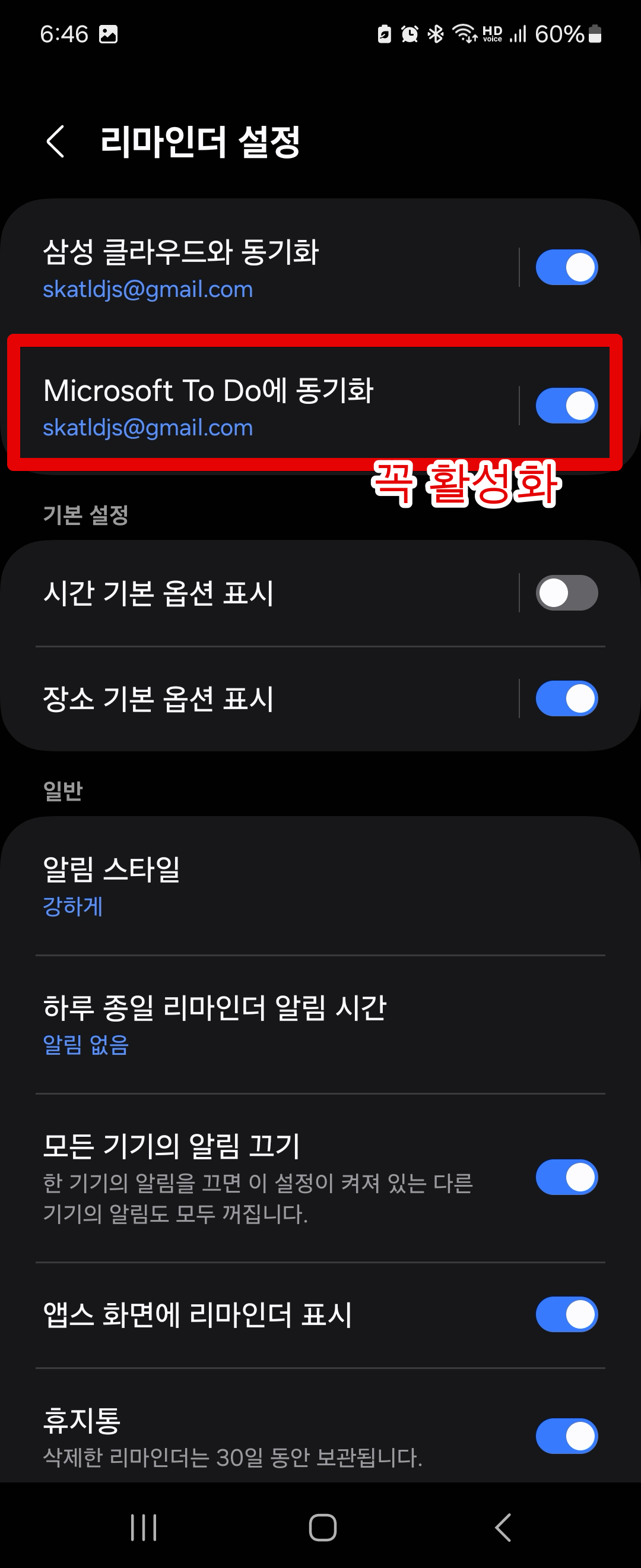 갤럭시 리마인더와 마이크로소프트 Todo 연결