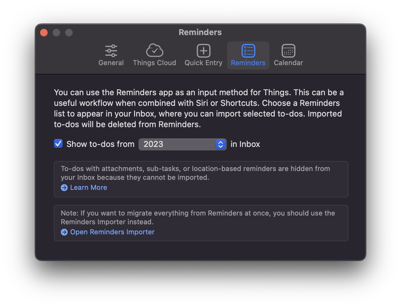 마지막으로 맥북의 Things3에서 설정으로 들어가면 리마인더 탭이 있는데 여기에서 이전에 설정해둔 카테고리를 지정해주면 연동 작업이 끝납니다.
