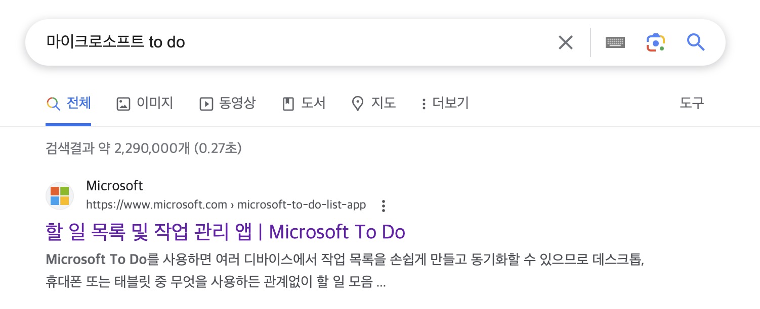 구글에서 마이크로소프트 to do 라고 검색해서 '할 일 목록 및 작업 관리 앱'으로 들어갑니다.