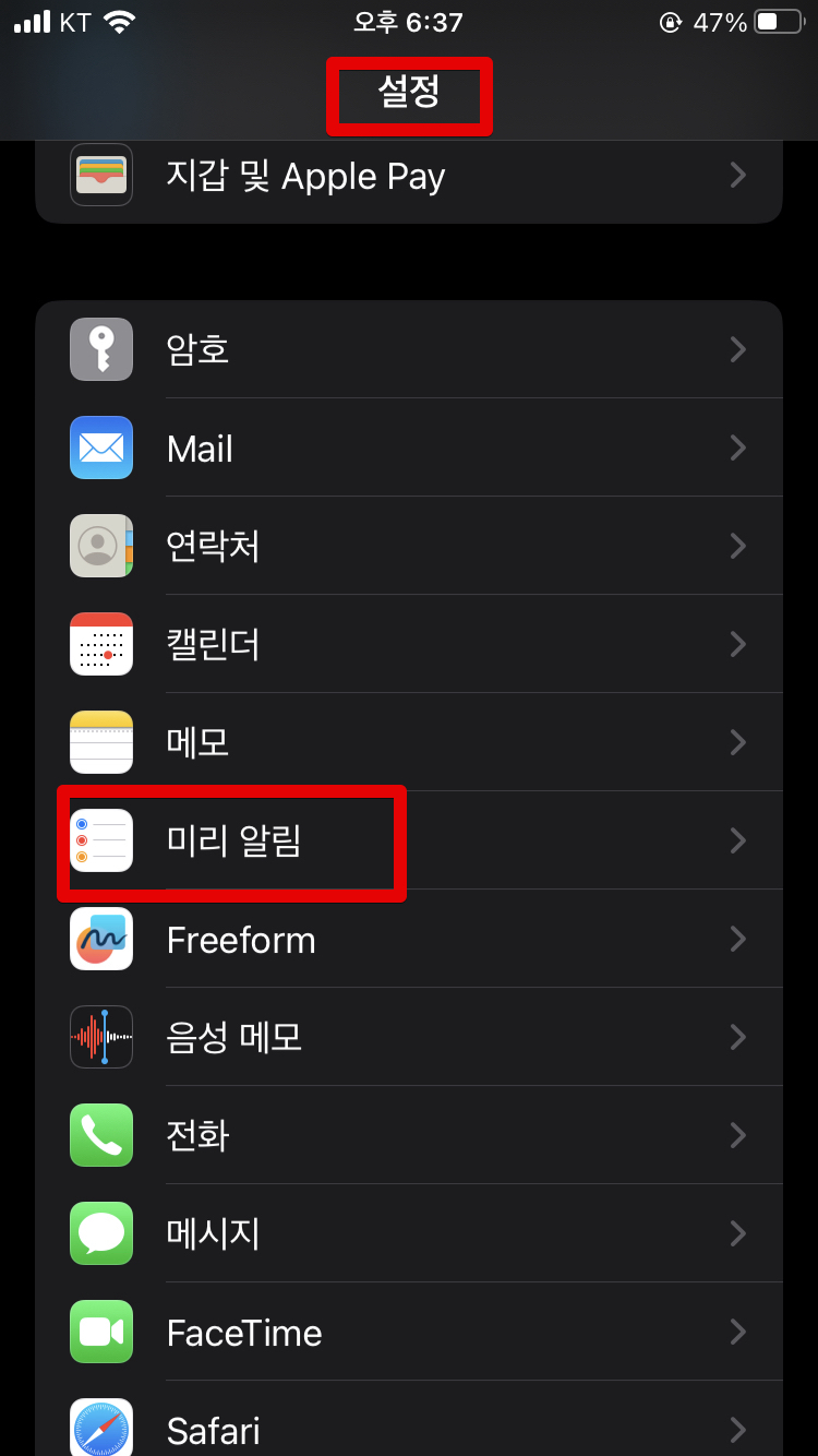 아이폰 미리알림을 Exchange로 로그인 및 설정해주기