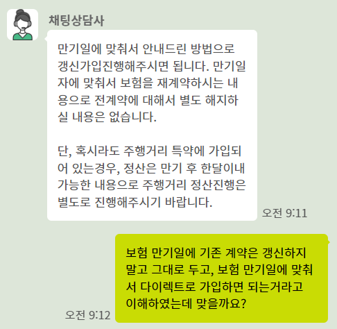 - 자동차보험을 다이렉트로 변경하고자할 땐, 갱신 기간에 맞춰서 그냥 다이렉트로 가입하면 됨.