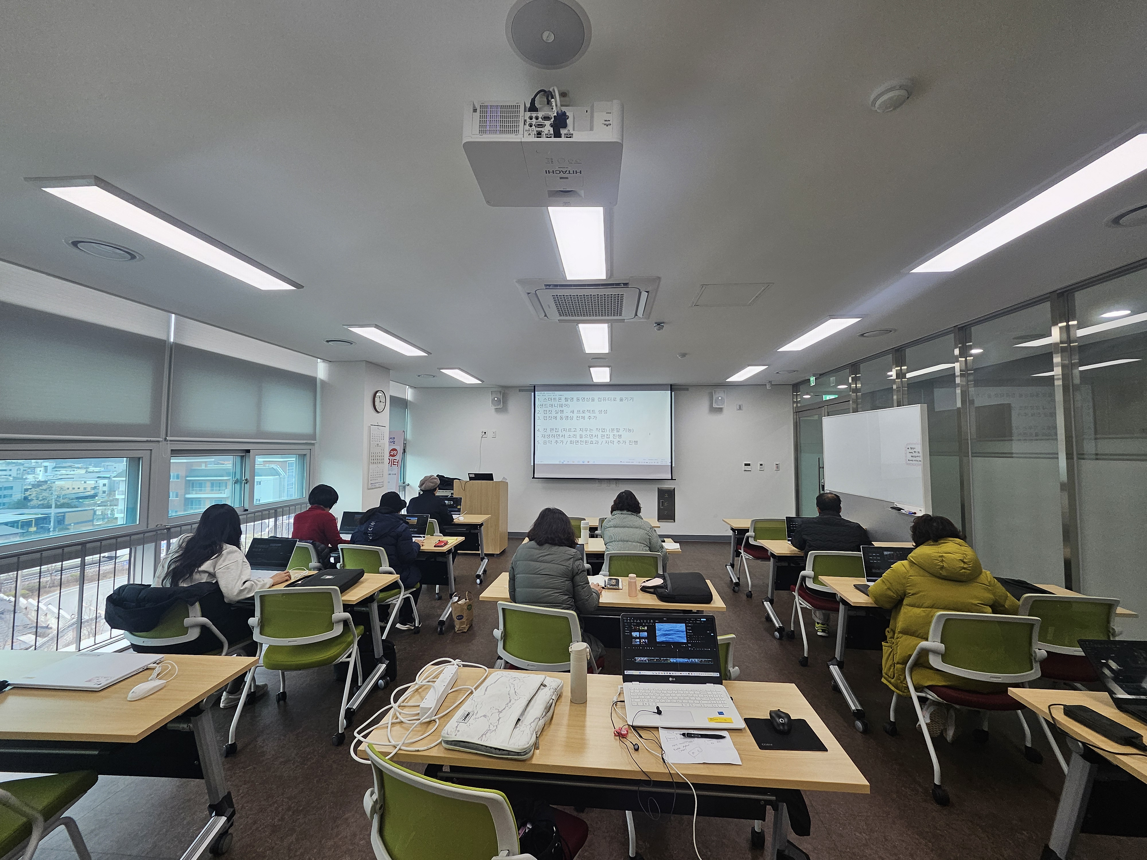 제가 진행한 과정은 미디어 크리에이터 과정 중에서 중급 과정으로서 초급 과정을 마친 수강생분들을 대상으로 하는 심화된 과정이었는데요. 주최측에서 노트북을 제공해주어서 수강생분들이 편하게 노트북을 이용하여 동영상 제작 및 편집을 할 수 있는 재미있는 시간이었습니다.