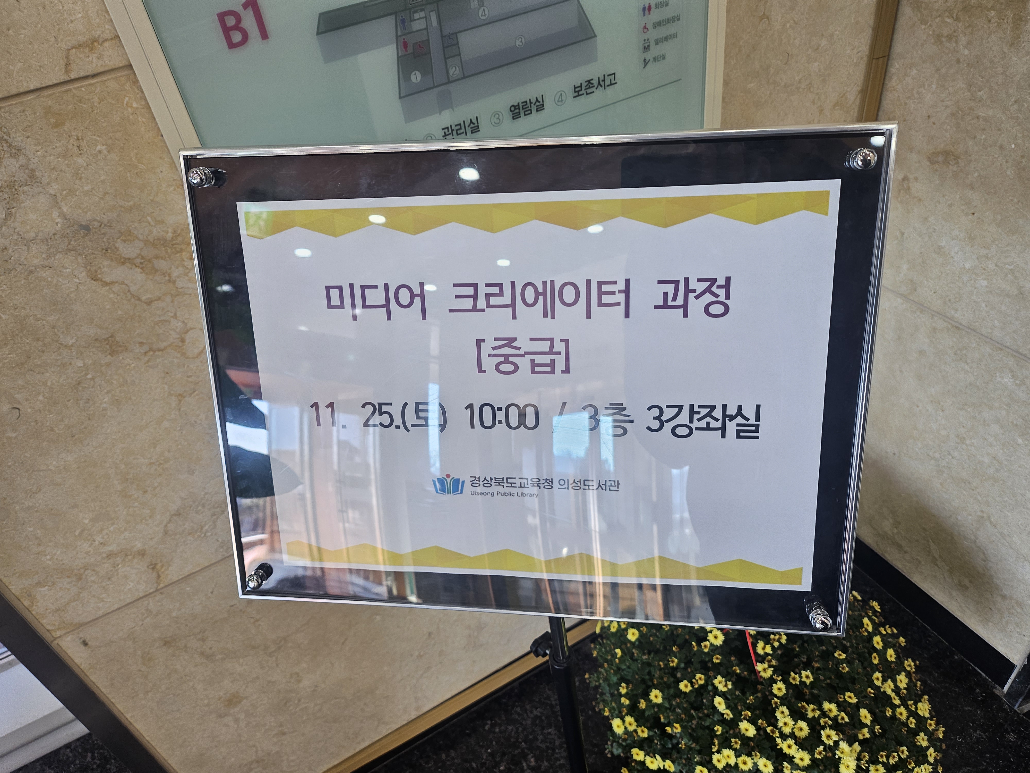 의성도서관에서 열리는 미디어 크리에이터 과정에 초청받아 4회 커리큘럼 강의를 진행하였습니다.