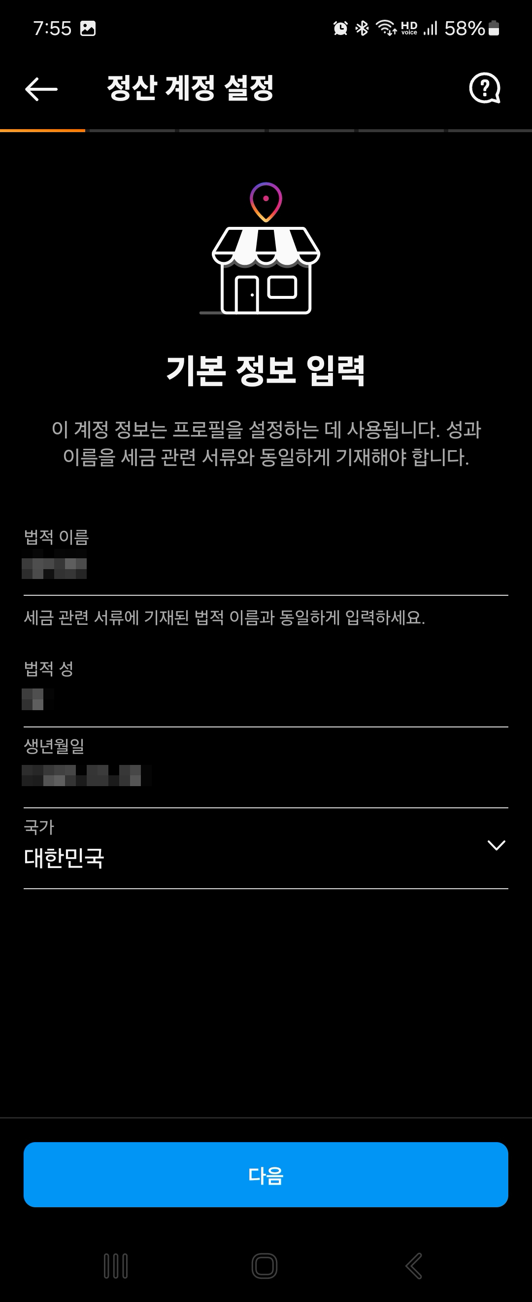 인스타그램 수익화 보너스 활성화 및 정산계정설정 방법